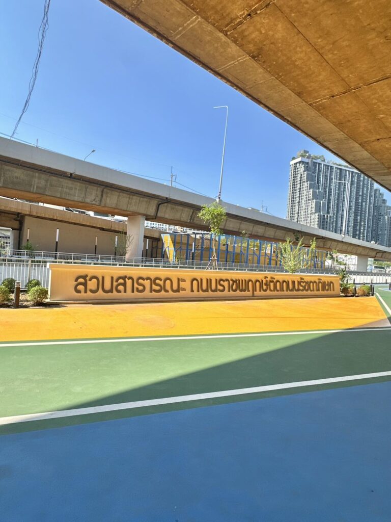 สวนสาธารณะอะไรชื่อยาวขนาด “สวนสาธารณะ ถนนราชพฤกษ์ตัดถนนรัชดาภิเษก“ แต่อ่านแล้วรู้พิกัดทันที 😆 สวนใหม่ติด BTS ตลาดพลูครับ ฝั่งธนนี้ไม่ค่อยมีสวนสาธารณะเท่าไหร่เนอะ แต่ที่ใหม่นี่ติดรถไฟฟ้าและ BRT ราชพฤกษ์เลย สะดวกมากก นอกจากอยู่ติดกับตลาดสถานีรถไฟ BTS ตลาดพลู ก็ใกล้ The Mall Lifestore ท่าพระด้วย ออกกำลังกายเสร็จแวะหาของเติมพลังได้เลย ภายในมีทั้งที่วิ่งรอบคลอง, สนามบาสเก็ตบอล, ลานสเก็ตบอร์ด, ปั่นจักรยาน, ลานอเนกประสงค์พื้นแบบ Soft Floor สว. มาเต้นแอโรบิคได้ และที่นั่งต่างๆ ข้อดีคืออยู่ใต้ถนนลอยฟ้าครับ ก็ได้ร่มเงาบังแดดไปในตัว เริ่มวิ่งได้เลยยย ตามทางสีเขียวเข้มไปครับ พื้นที่นั่งพัก ฝั่งนี้ติดกับตลาด มีพื้นที่ Soft Floor กันกระแทก วิ่งรอบคลอง รอต้นไม้โตอีกนิดน้าา น่าจะเขียวสดชื่น เดินออกมาเจอตลาดเลย ของกินเยอะเลือกได้ ข้ามถนนเล็กๆ