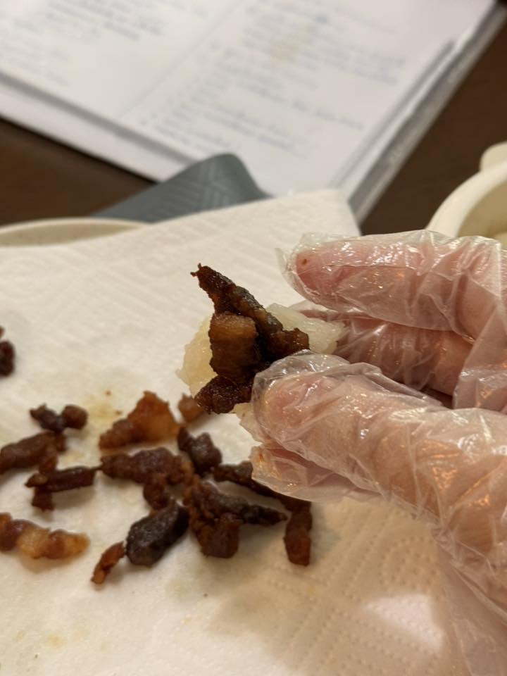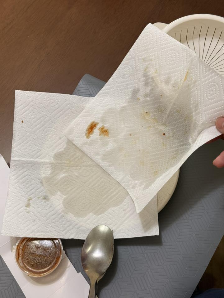 แต่ส่วนตัวคิดว่าปริมาณเนื้อหมูต่อข้าวเหนียวเกือบจะไม่บาล้านซ์ และถ้าเค้าวางให้สะเด็ดน้ำมันกว่านี้จะดีมากก ตอนเข้าเวฟก็เทออกจากถ้วยไปรอบนึงแล้วนะ เอาทิชชู่รองสองชั้นซับมันอีกรอบนึงคิดว่าหมอไขมันคงให้อภัยฉันแหละ ใช่มั้ย
