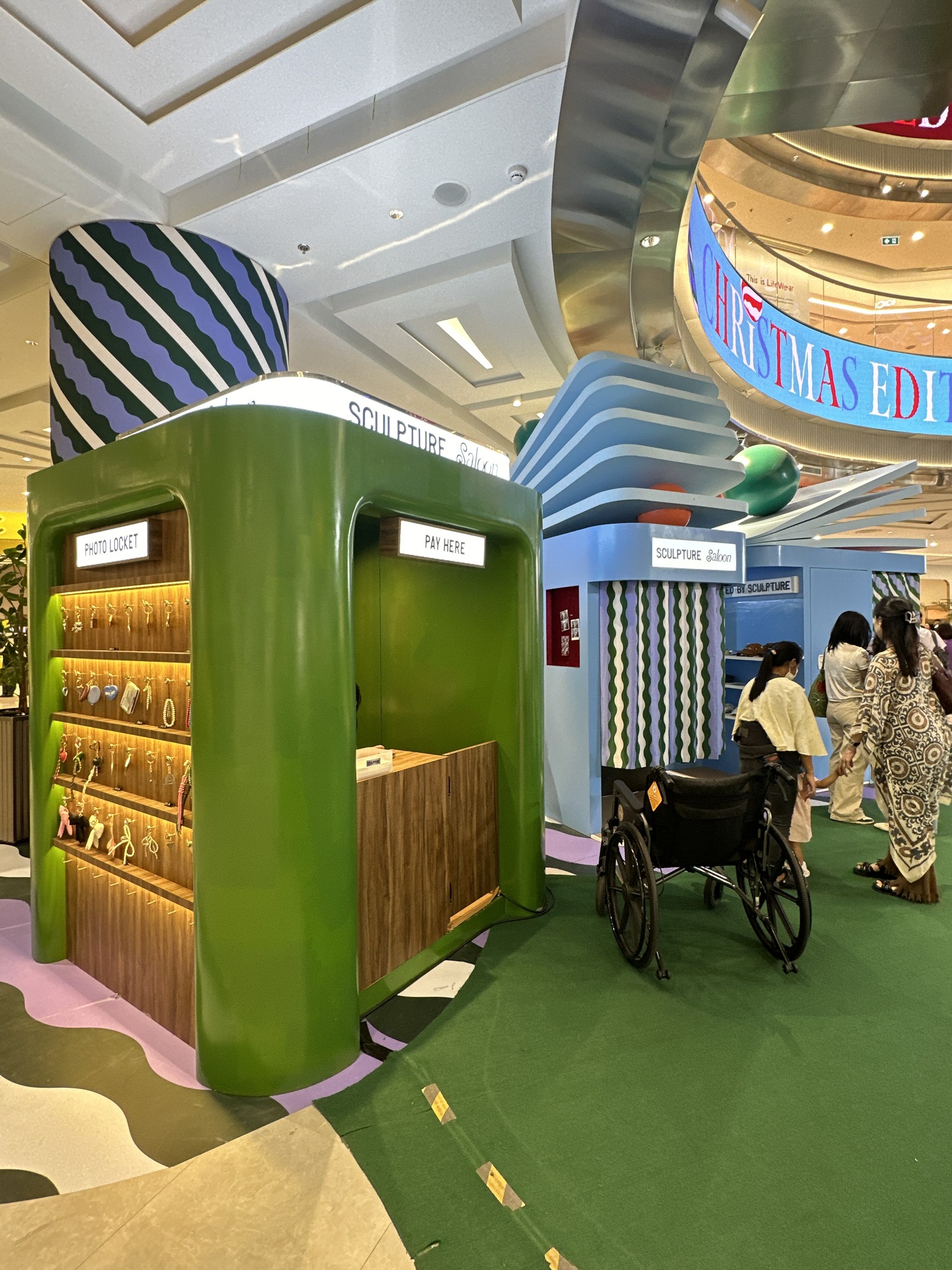​ส่วนโถงบันไดเลื่อนอีกฝั่ง ที่ชั้น 1 ก็มีต้นคริสต์มาสผ้าต้นใหญ่ พร้อมห้องกระจกด้านใน ซึ่งตรงนี้มีกิจกรรมให้ทำอย่างถ่ายรูป Photo Booth ช้อปของน่ารักๆ ทั้งหมวก พวงกุญแจ กระเป๋า จาก Sculpture Saloon, น้ำหอม Antidotes, ขนม Neil’s Bake Shoppe และของตกแต่งบ้านน่ารักๆ จาก Perfect Decors ครับ