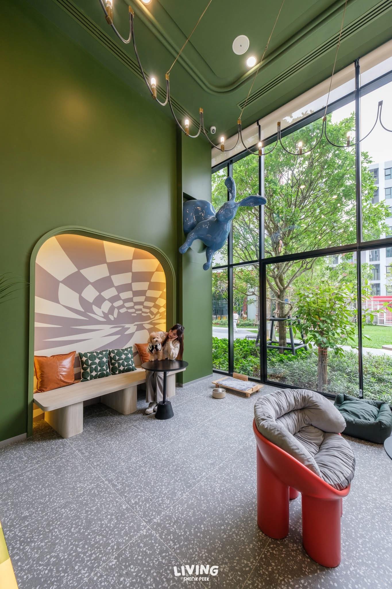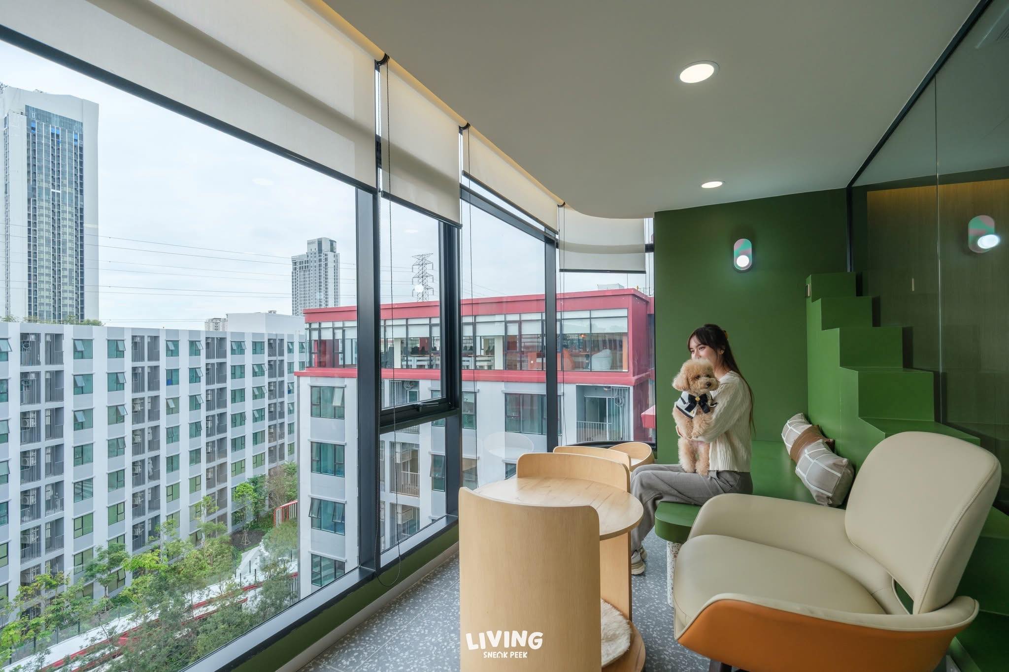 จุดเด่นของอาคาร Pet Friendly ที่นี่ส่วนกลางของอาคารนี้ พาสัตว์เลี้ยงไปได้หมดครับ ไล่ตั้งแต่ Lobby ชั้นล่างที่มีมุมให้น้องแมวปีนป่าย น้องหมานั่งอยู่กับเรา มีห้อง Playroom แบบเป็นส่วนตัว รวมไปถึงชั้นบนสุดของอาคารก็เป็น Lounge ที่พาน้องไปนั่งชมวิวได้อีก ทำให้ไม่ต้องอยู่แต่ในห้อง สามารถพาลูกชายลูกสาวไปเปลี่ยนบรรยากาศได้ทุกที่ รวมทั้งยังมี Pet Park อยู่ด้านหลังด้วย