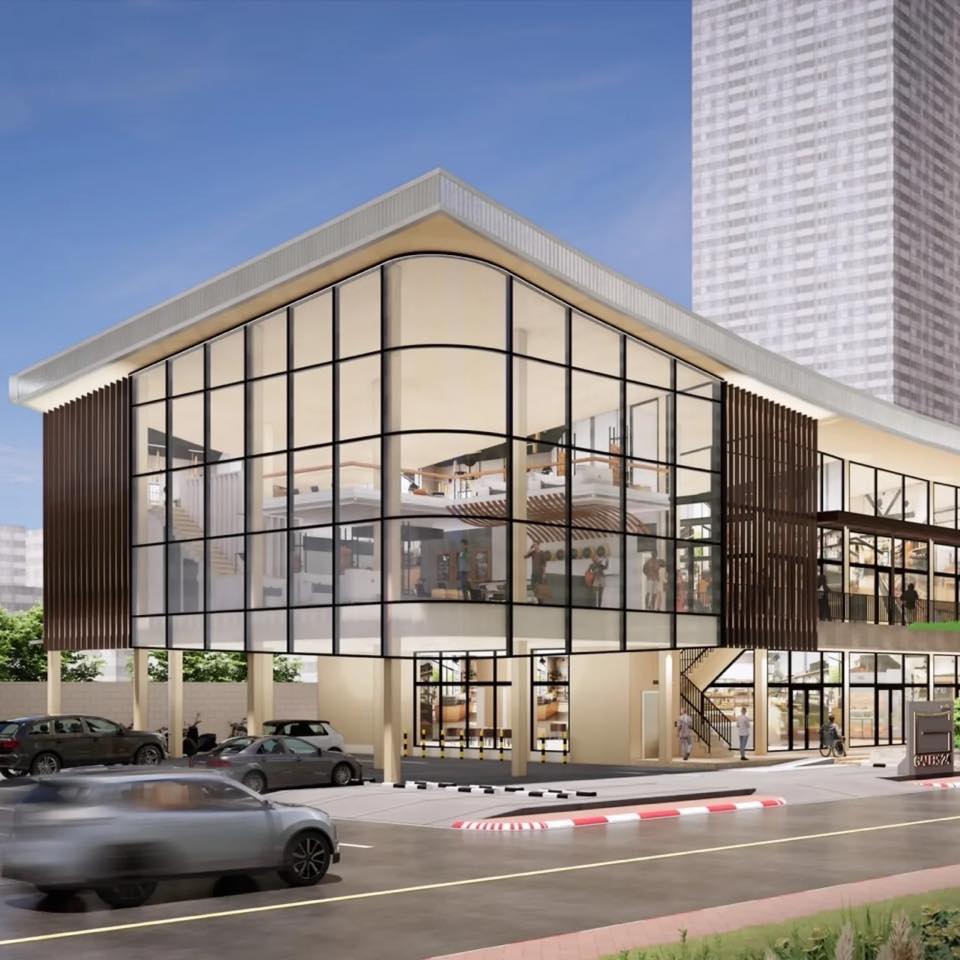 ตัวคอมมูนิตี้มอลล์ดีไซน์สวย ทำมาหน้ากว้าง หลังคาทรงโค้งลง ในนี้จะมีคาเฟ่ ร้านอาหาร ร้านสะดวกซื้อ และร้านขายของสดต่างๆ จะทานที่นี่ หรือซื้อกลับไปทำทานเองที่บ้านก็ได้ มีแผนเสร็จ Q1 ปี 2026