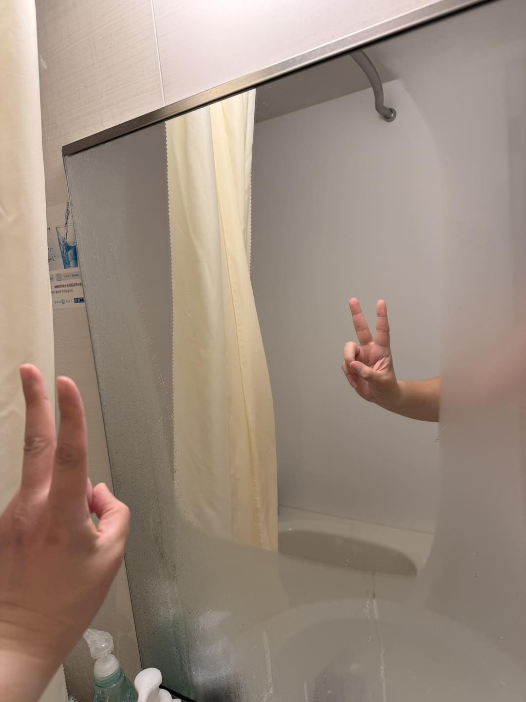 แล้วเวลามาอากาศหนาวๆ เดินเยอะๆ แบบนี้เวลาได้แช่น้ำร้อนนี่มันสบายสุดๆ ครับ แต่ด้วยขนาดพื้นที่แค่นี้ไอน้ำมันก็ฟุ้งทั่งห้อง แล้วไอความเซอร์ไพรส์ก็มาเกิดขึ้นตอนมาที่อ่างล้างหน้านั่นแหละ เฮ้ย มันไม่เป็นฝ้า แตะๆ ดูสัมผัสถึงไออุ่นๆ ที่อยู่ด้านหลังกระจก น่าจะอารมณ์เดียวกับส่วนไล่ฝ้าในกระจกรถยนต์ที่เค้าซ่อนใต้กระจกส่วนที่แต่งหน้าไว้ ทำให้ไม่ว่าอาบน้ำเมื่อไหร่ก็แต่งหน้า แต่งตัวต่อได้เลย