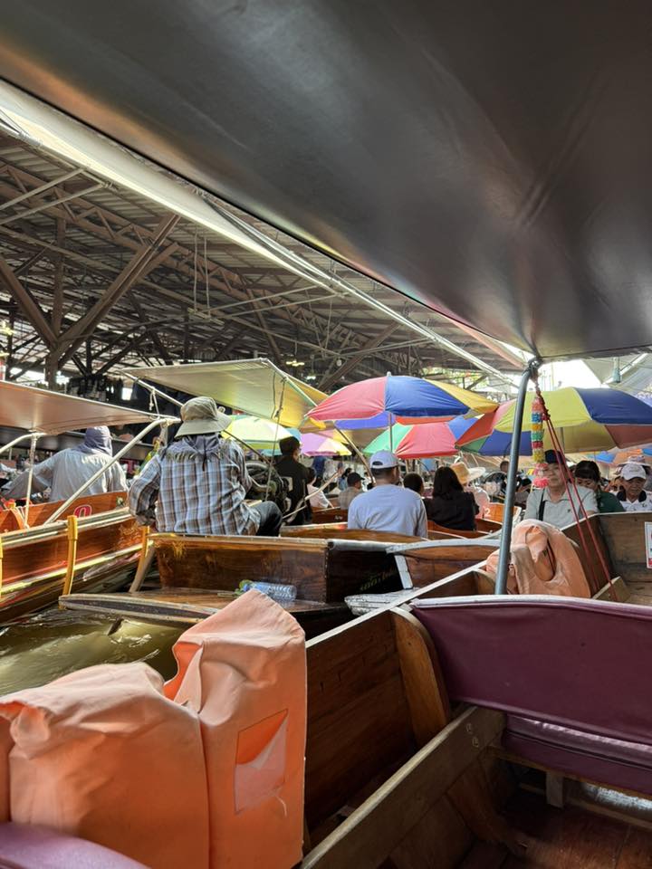ลองชวนภรรยาและลูกหมาที่เพิ่งเคยมาครั้งแรกนั่งเรือกันไปก็รู้สึกว่ามันก็มีความเป็นเหมือนที่เค้ารีวิวกันอยู่เหมือนกัน กว่าจะออกนอกตลาดได้ก็ดำเนินติดขัดอยู่ เต็มไปด้วยเรือนักท่องเที่ยวแน่นขนัด เรือจะเลียบข้างคอยจอดแวะร้านค้าเหมือนเวลาเราไปทัวร์แล้วพาลงร้านต่างๆ ค่อนข้างเยอะ สิ่งที่เคยเป็นเสน่ห์สมัยอดีตที่ผมรู้สึกว่ามันมีของกินอะไรมากมายก็ไม่ค่อยมีเท่าไหร่ คนที่มาก็มีแต่ต่างชาติจนผมไม่แน่ใจว่ามีผมเป็นนักท่องเที่ยวคนไทยกลุ่มเดียวรึเปล่า