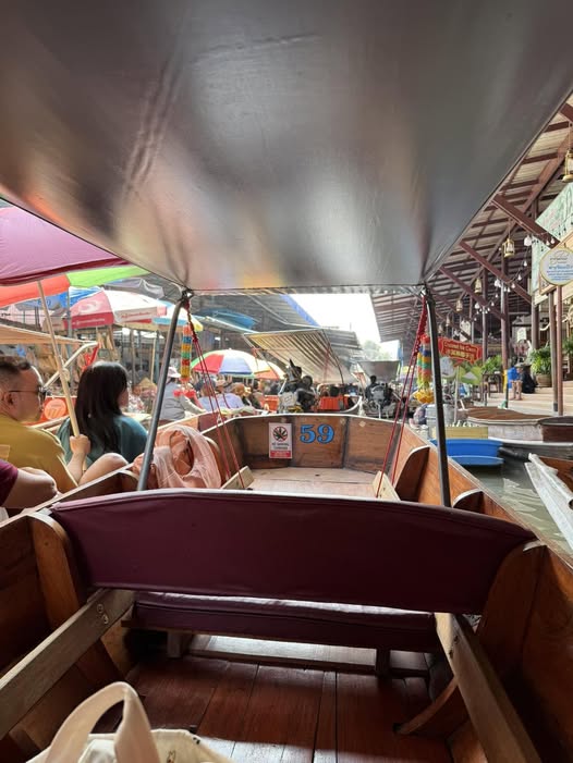 ลองชวนภรรยาและลูกหมาที่เพิ่งเคยมาครั้งแรกนั่งเรือกันไปก็รู้สึกว่ามันก็มีความเป็นเหมือนที่เค้ารีวิวกันอยู่เหมือนกัน กว่าจะออกนอกตลาดได้ก็ดำเนินติดขัดอยู่ เต็มไปด้วยเรือนักท่องเที่ยวแน่นขนัด เรือจะเลียบข้างคอยจอดแวะร้านค้าเหมือนเวลาเราไปทัวร์แล้วพาลงร้านต่างๆ ค่อนข้างเยอะ สิ่งที่เคยเป็นเสน่ห์สมัยอดีตที่ผมรู้สึกว่ามันมีของกินอะไรมากมายก็ไม่ค่อยมีเท่าไหร่ คนที่มาก็มีแต่ต่างชาติจนผมไม่แน่ใจว่ามีผมเป็นนักท่องเที่ยวคนไทยกลุ่มเดียวรึเปล่า