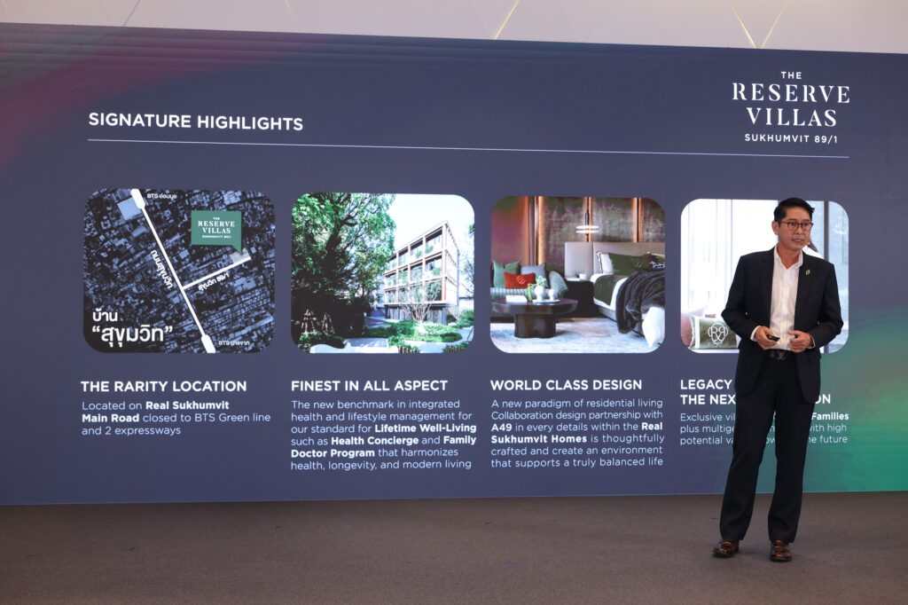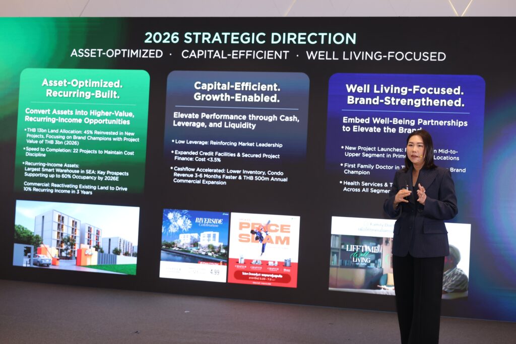ขณะที่ในมิติสุดท้าย “Well Living-Focused, Brand-Strengthened” บริษัทฯ เดินหน้าพัฒนาโครงการใหม่ในกลุ่ม Mid-to-Upper Segment เพิ่มขึ้น ควบคู่กับการผสานแนวคิดสุขภาพเข้าสู่ที่อยู่อาศัยอย่างเป็นรูปธรรม ผ่านการเปิดตัวบริการ Family Doctor ซึ่งถือเป็นครั้งแรกในประเทศไทยที่ผู้พัฒนาอสังหาริมทรัพย์นำโมเดล “แพทย์ประจำครอบครัว” มาบูรณาการเป็นส่วนหนึ่งของประสบการณ์การอยู่อาศัย