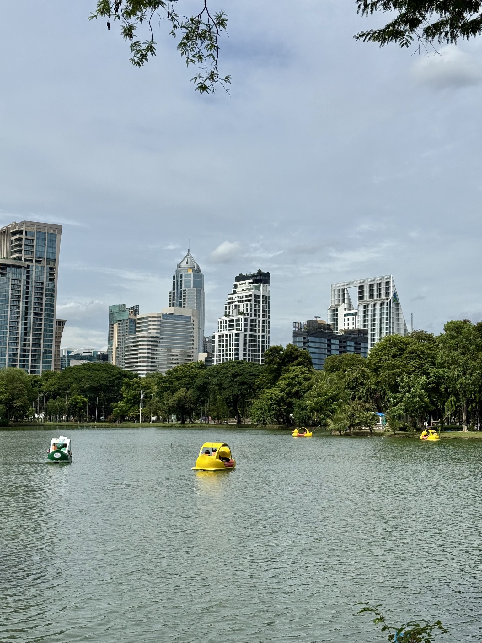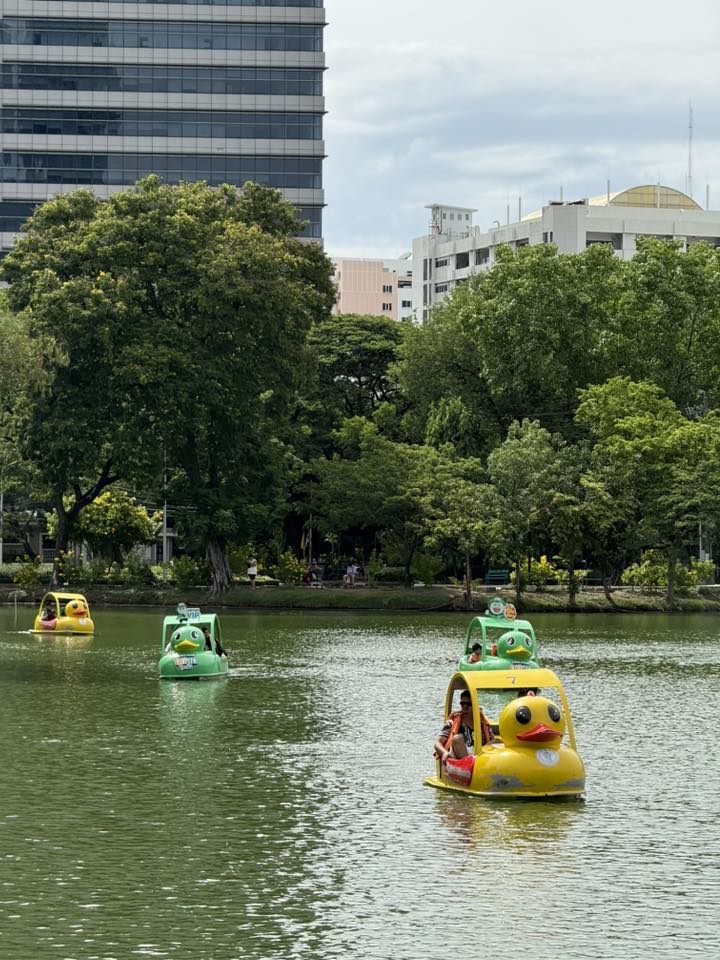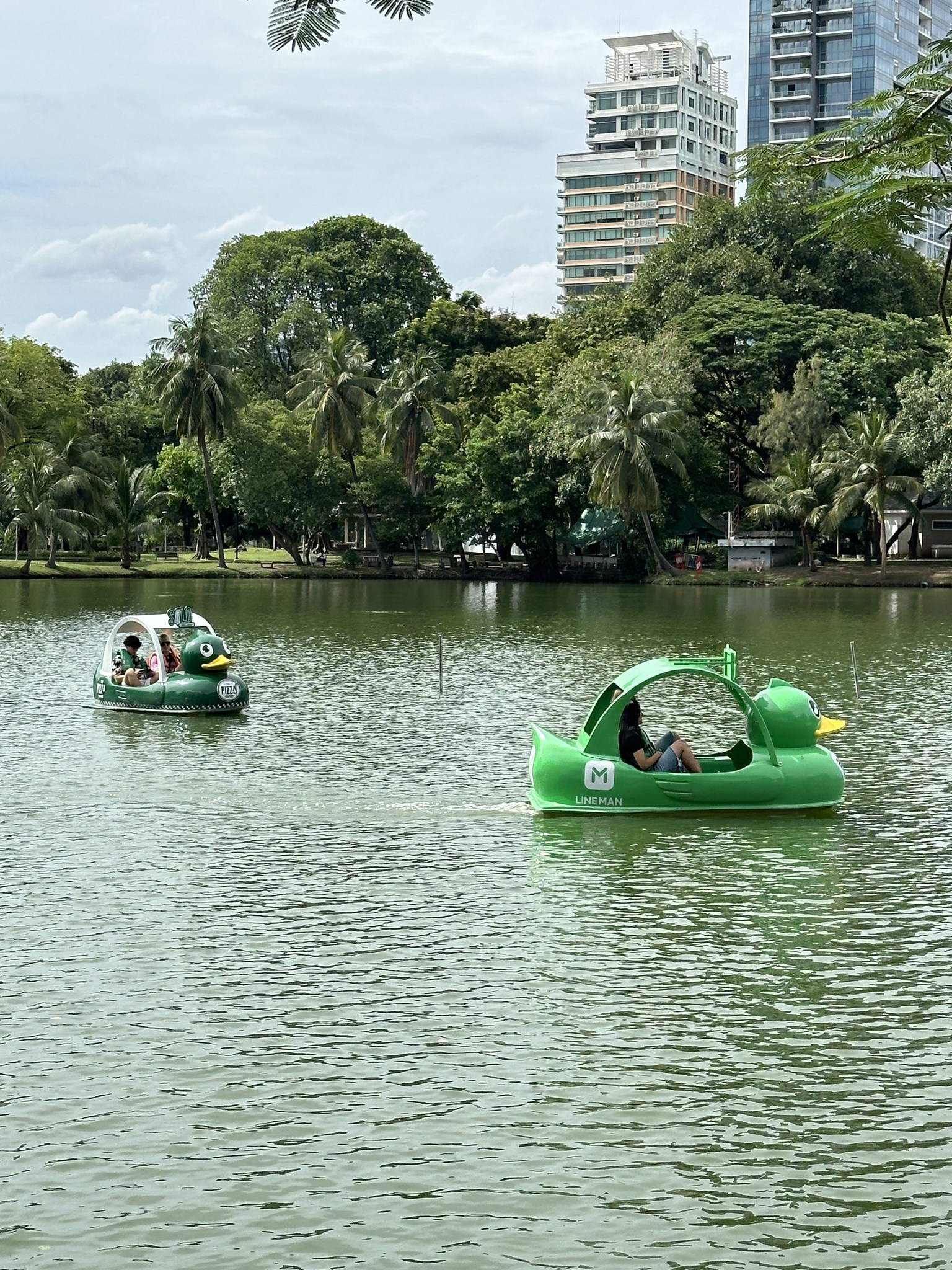 กิจกรรมฮิตที่เค้ามาทำ นอกจากการเดินวิ่ง นั่งพักผ่อน ก็คือการมาต่อคิวปั่นเรือเป็ดนี่แหละ ปั่นชมวิวตึกสวยๆ ฟีลๆ ที่นี่ปั่นฟรีด้วยนะ แล้วเค้าตกแต่งลายของเรือเป็ดเป็น Line Man และ The Pizza Company มานั่งลุ้นว่าเดลิเวอรี่เจ้าไหนจะไปไวกว่า ก็เพลินดี เข้าใจคิดหาที่แปะป้ายโฆษณาแหะ