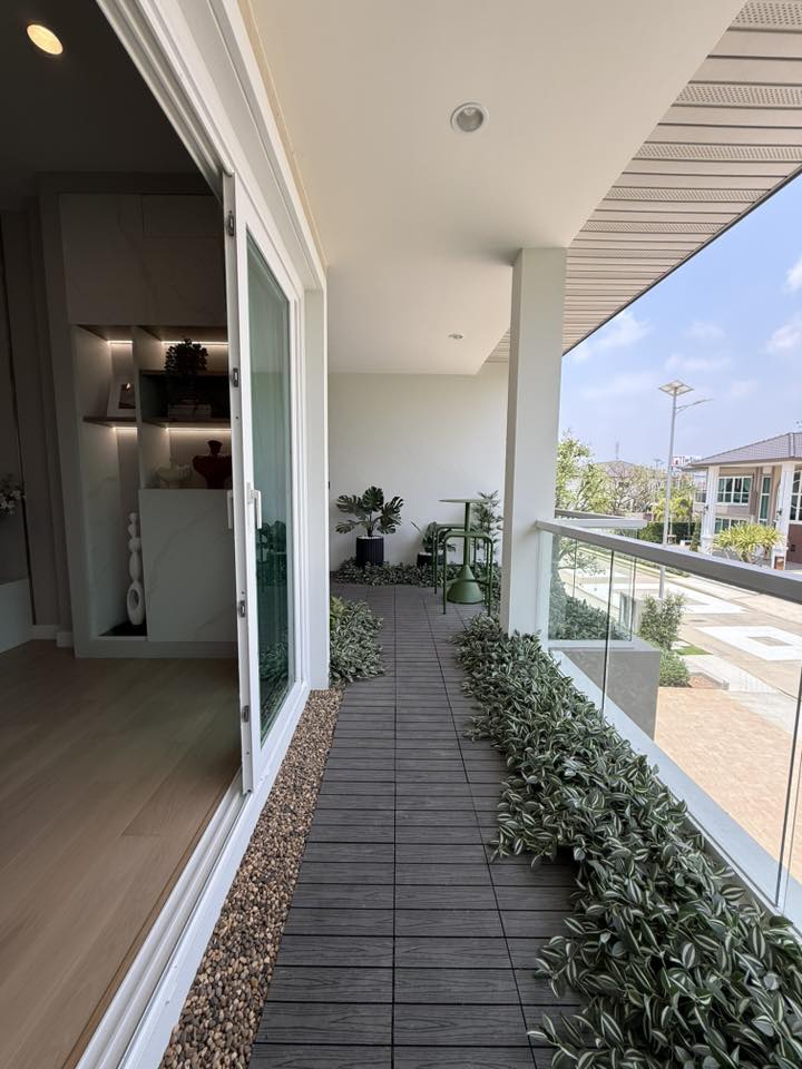 จุดเด่นคือโครงการนี้เค้าเอาสายไฟลงดินหมดเลย ส่วนตัวบ้านทำระเบียงมาให้มีพื้นที่สามารถปรับเป็น Pocket Garden และทำที่นั่งพักผ่อนรับลมธรรมชาติได้ มีระบบฟอกอากาศ Airflow System, ติด Solar Cell ที่หลังคา และรองรับการติดตั้ง EV Charger ในบ้านทุกหลังครับ