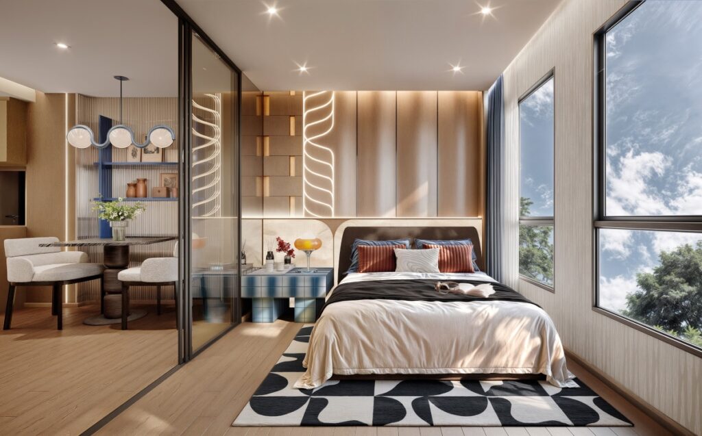 ครั้งแรกกับห้องชุดดีไซน์ 30.5 ตร.ม. ที่สร้างอิสระการใช้งานอย่างลงตัวที่สุด ด้วยการ แยกฟังก์ชัน Working และ Living ออกจากกันอย่างชัดเจน เพื่อสร้างสมดุลชีวิตระหว่างงานและการพักผ่อน และ Pet Pal Suite (27 – 45 ตร.ม.) ห้องดีไซน์พิเศษสำหรับ Pet Parent โดยเฉพาะ ที่มอบความมั่นใจและอิสระในการใช้ชีวิตร่วมกับสัตว์เลี้ยงในระยะยาว ผ่านความตั้งใจหลักในมิติความปลอดภัย เน้นการใช้สี Organic Care และออกแบบราวกันตกถี่ขึ้น เพื่อสุขภาพและความปลอดภัยสูงสุด ทนทานและดูแลรักษาง่าย ด้วยการเลือกใช้พื้นผิวที่ทนต่อรอยขีดข่วนและน้ำ พร้อม Anti-slip Tile ทำให้ห้องชุดมีความสวยงามและทำความสะอาดง่าย พร้อม Pet Door ในห้องน้ำ ที่เพิ่มอิสระในการเข้า-ออกเมื่อสัตว์เลี้ยงอยู่ด้วยตัวเองในช่วงกลางวัน โดยเจ้าของไม่ต้องกังวลเรื่องสุขอนามัย