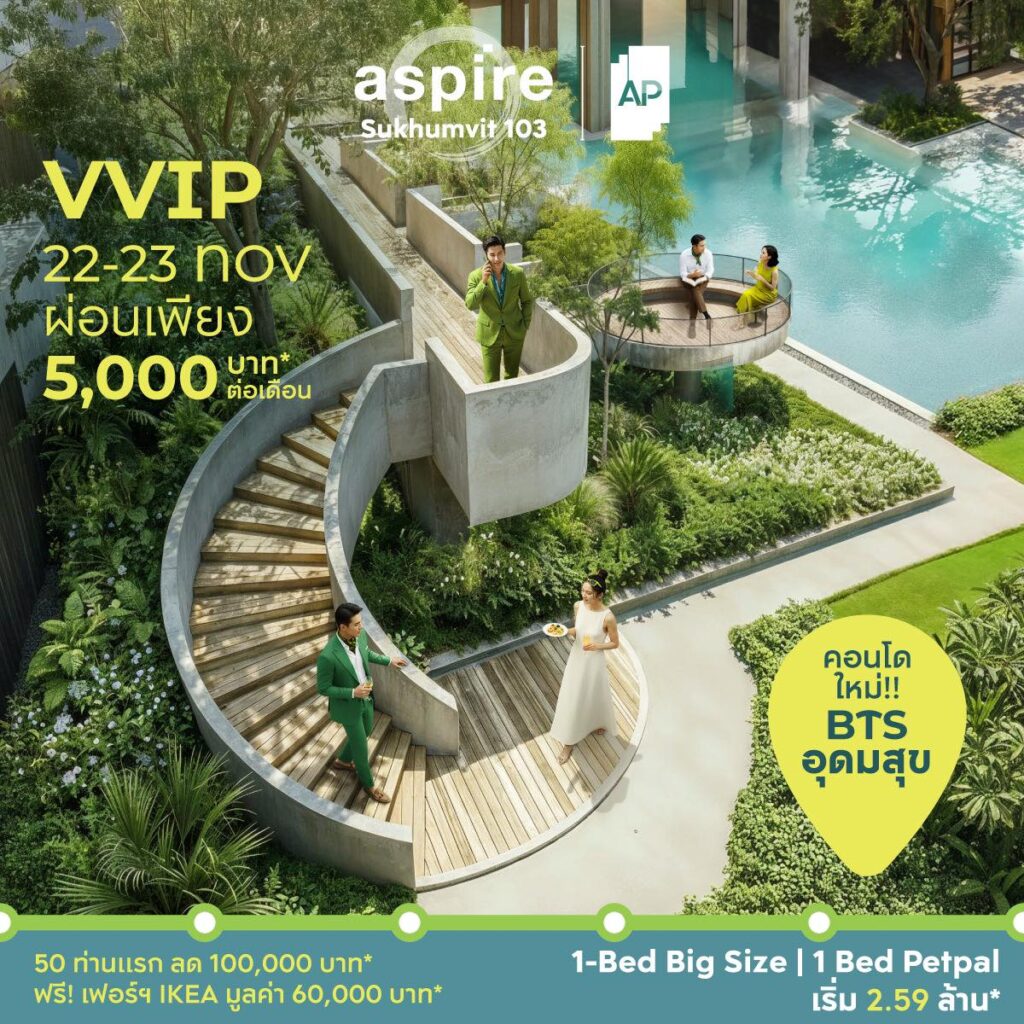 “ASPIRE Sukhumvit 103” คอนโดเลี้ยงสัตว์ได้ครั้งแรกของแบรนด์ ASPIRE เริ่ม 2.59 ล้าน*