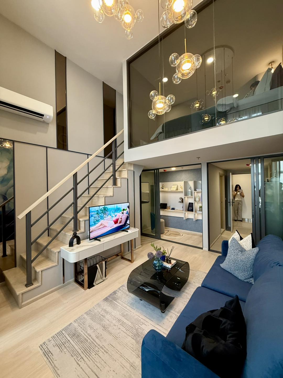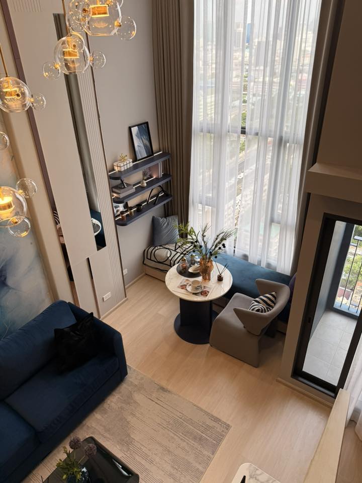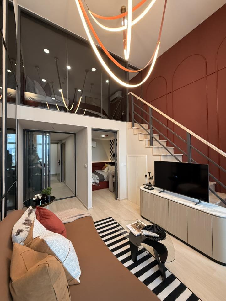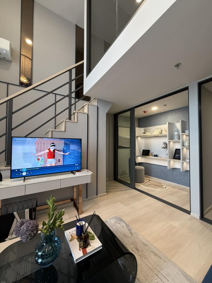 นี่เป็นคอนโด 2 ชั้น ของ AP ที่สวยและลงตัวที่สุดที่ผมเห็นมานะ ทายออกมั้ยครับว่าพื้นที่เท่าไหร่? ห้องนี้มัน trade off พื้นที่ห้องครัวกับห้องน้ำชั้นล่างให้ขนาดกระทัดรัดหน่อย แต่สิ่งที่ได้มาคือ Living Area กว้างขึ้น มีมุมทำงานใต้ชั้น 2 เพิ่มขึ้นมา แล้วห้องนอนชั้นบนดีมากกก ดูกระจกบานใหญ่นั่นสิ แล้วก็กั้นห้องปิดเรียบร้อย แถมมีห้องน้ำให้ใช้ในตัว ซึ่งขนาดใช้ได้เลยไม่ใช่จิ๋วแบบต้องบีบตัวเข้าไป