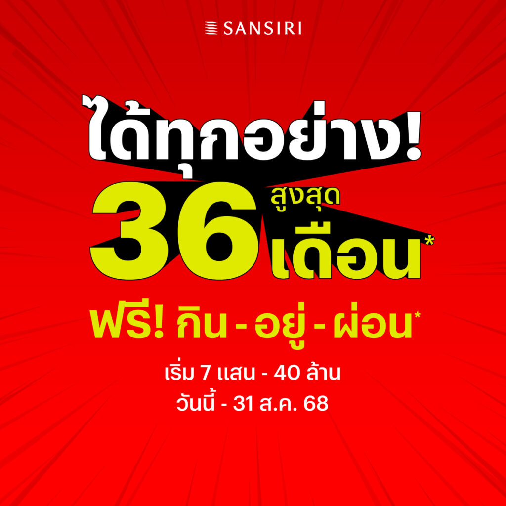 แสนสิริ ออกโปรแรง คุ้มค่าที่สุดแห่งปี “ได้ทุกอย่าง!“ สูงสุด 36 เดือน* บริษัท แสนสิริ จำกัด