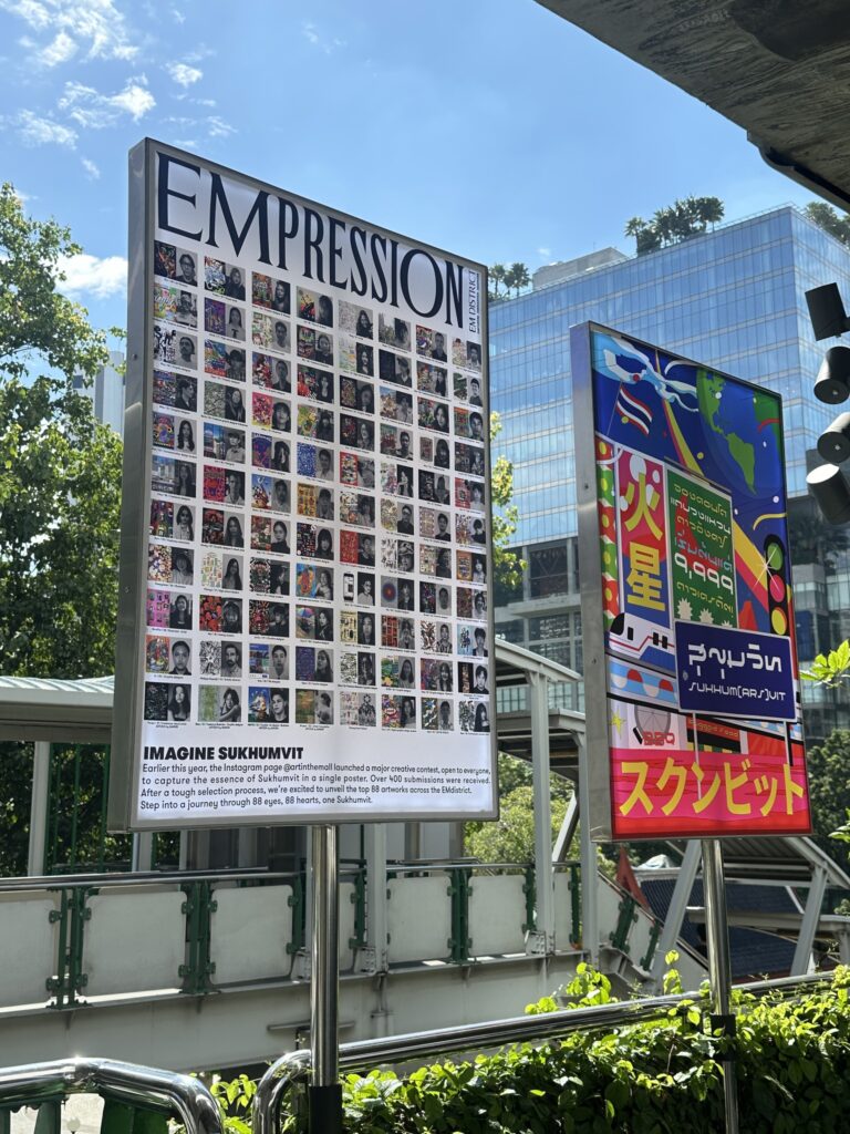 Skywalk ไป EmSphere นอกจากความร่มรื่นมีต้นไม้ใบหญ้าให้มอง ตอนนี้เค้ามีงานศิลปะให้ดูเพลินๆ เพิ่มอีก เป็นนิทรรศการ “Empression” งานอาร์ตที่บอกเล่าความเป็น “สุขุมวิท”
