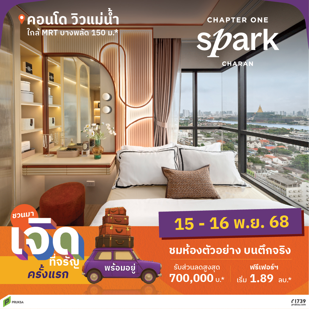 ผ่านไปแป๊บเดียวชาวฝั่งธนฯ ได้เห็นคอนโดใหม่วิบวับ “Chapter One Spark Charan” ตั้งตระหง่านเตรียมพร้อมจะให้เข้าอยู่ปลายปีนี้แล้วครับ จริงๆ พฤกษานี่ก็เจ้าถิ่นแถวนี้นะ หลังจากประสบความสำเร็จจาก RIO ที่บางอ้อ ซึ่งผมเองก็เคยไปยืนต่อแถวที่เซ็นปิ่นสมัยเปิดตัวด้วย ผ่านมาหลายปีพฤกษาก็กลับมากับคอนโดใหม่แห่งนี้ที่ยังเน้นการได้ชมวิวแม่น้ำเช่นเดิม ใครที่สนใจไปดูห้องตัวอย่างบนตึกจริงได้ 15-16 พ.ย. นี้ในราคาเริ่ม 1.89 ล้าน* ครับ