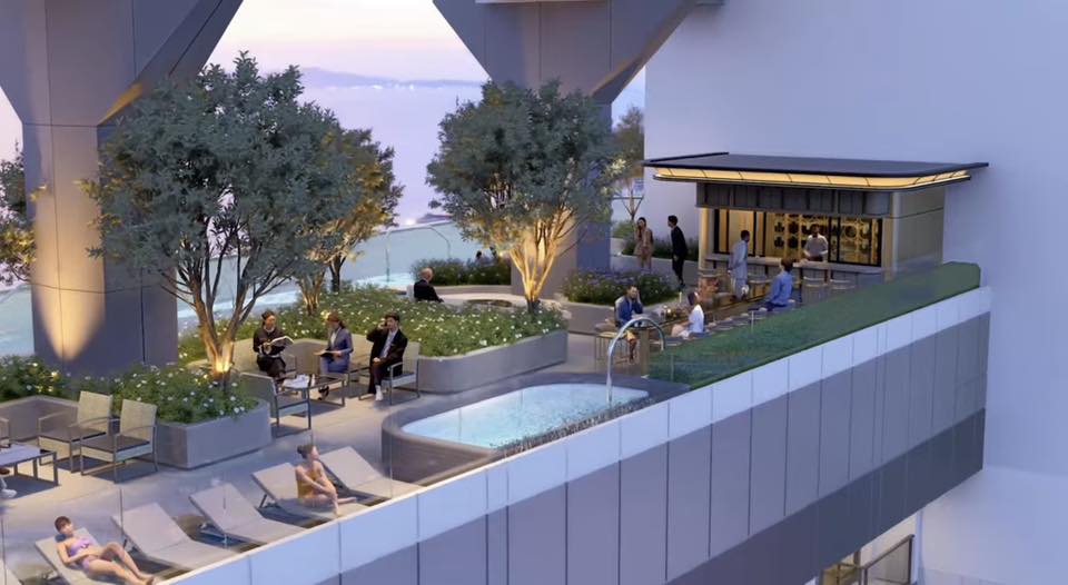 คอนโดตากอากาศที่นี่ ส่วนกลางระยิบระยับวับวาว มีสระว่ายน้ำถึง 4 สระ ทั้ง Wave Pool พร้อมบาร์เหมือนอยู่ริมชายหาด, Garden Pool ฟิลธรรมชาติ ยังมีสระว่ายน้ำที่ชั้น 6 ที่มาของเสานี้ และ Lap Pool ลอยฟ้าชั้น 50 เรียกว่าร้อนตอนไหน ก็เลือกโดดน้ำได้เลย ส่วนกลางอื่นๆ ก็ยังมีอีกเยอะ เพื่อรองรับทั้ง 1,897 ยูนิตครับ