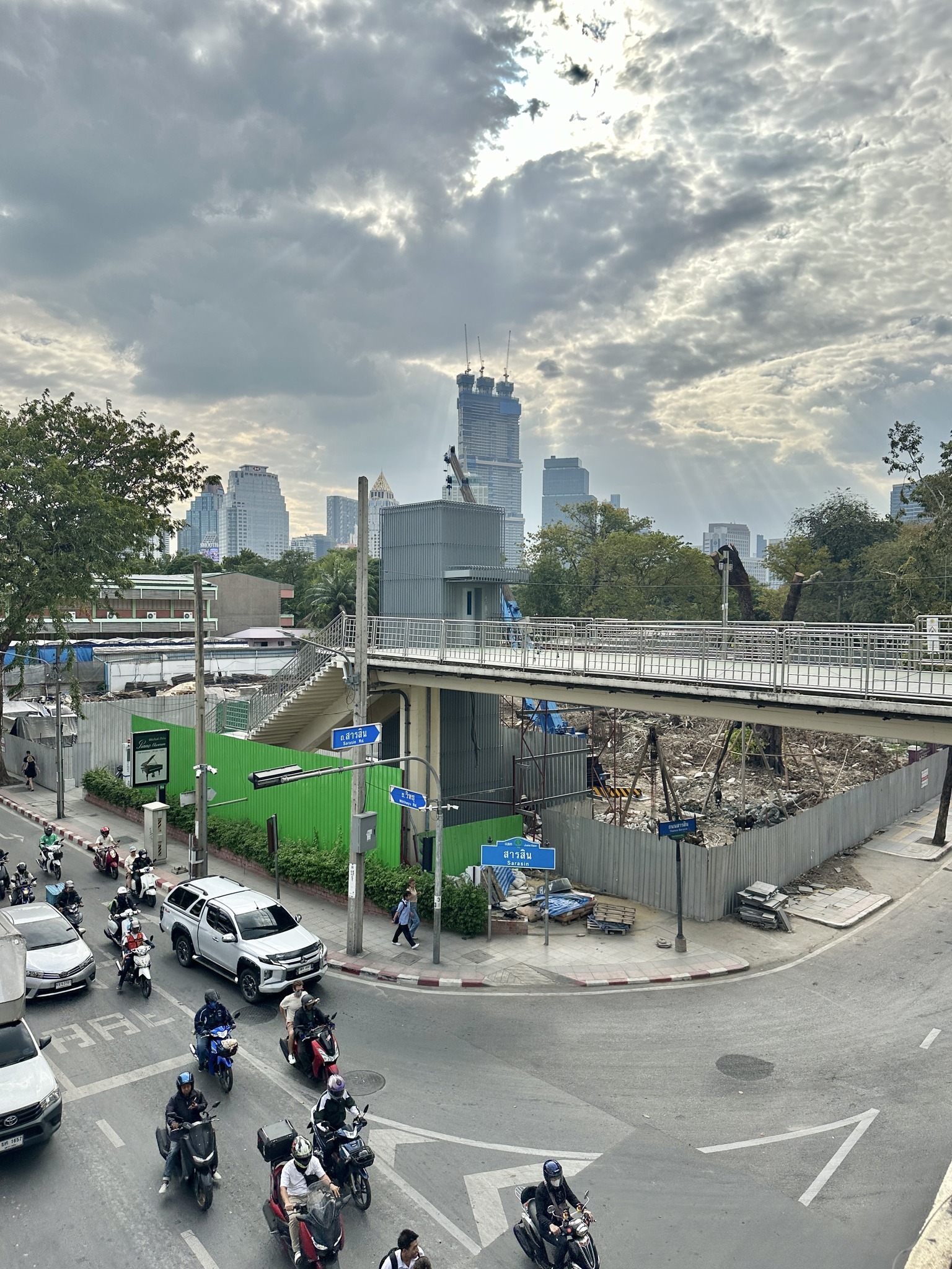 มี skywalk ไล่ระดับมาเชื่อมสะพานเขียวตรงเข้าสวนลุม