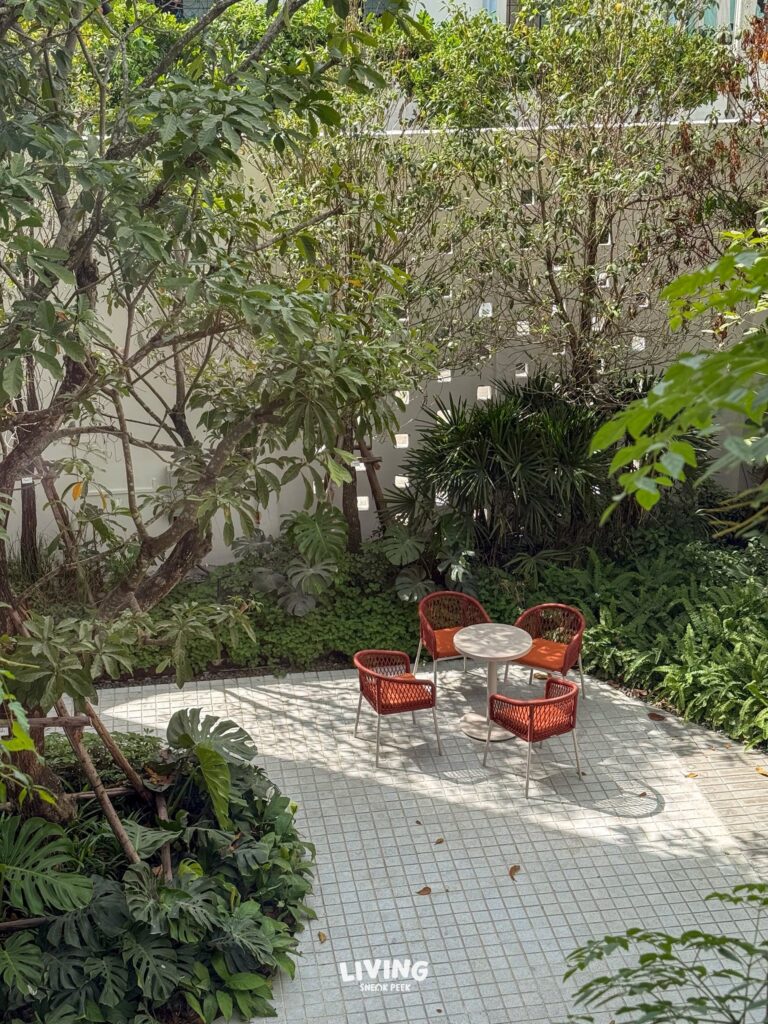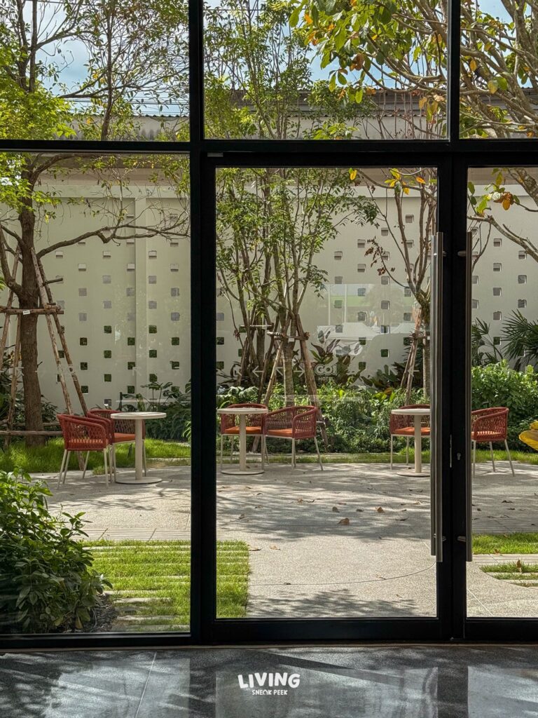 มุมมองลงไปที่สวนจากชั้น 2 ดีมาก