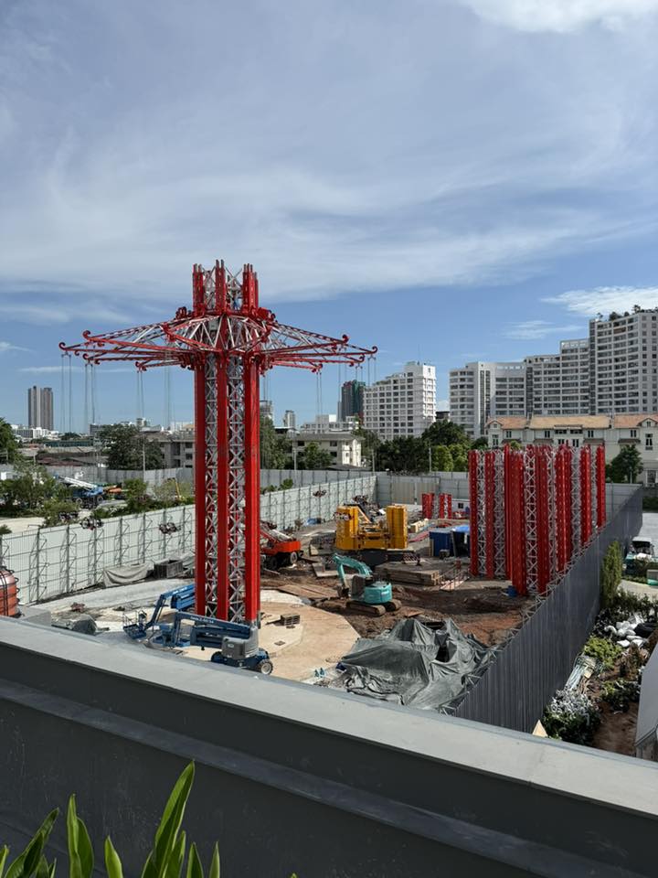 นี่คือเครื่องเล่นที่ว่า แล้วยังต่อไม่เสร็จนะ ดูเสาข้างหลังโน่นสิ