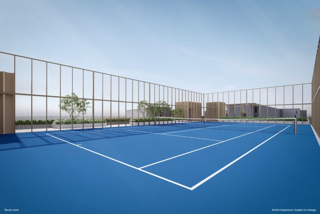 6. สิ่งอำนวยความสะดวกมากมาย เริ่มตั้งแต่ทุกอาคารมีสระว่ายน้ำเป็นของตัวเอง รวม 3 สระ มีบริการผ้าขนหนูไว้ให้ มี Kids Club และสนามเด็กเล่น / สระเด็กและ Jacuzzi / ห้องจัดกิจกรรมส่วนกลาง / Flexible Workspace & Residential Lounge / ห้องสันทนาการ / Rooftop BBQ Space / Sunken Seating / Tennis & Pickle Ball Court /All-day Dining / Co-working Zone / Jogging Track / Ice Bath / Sauna / Studio Yoga / Fitness with Technogym