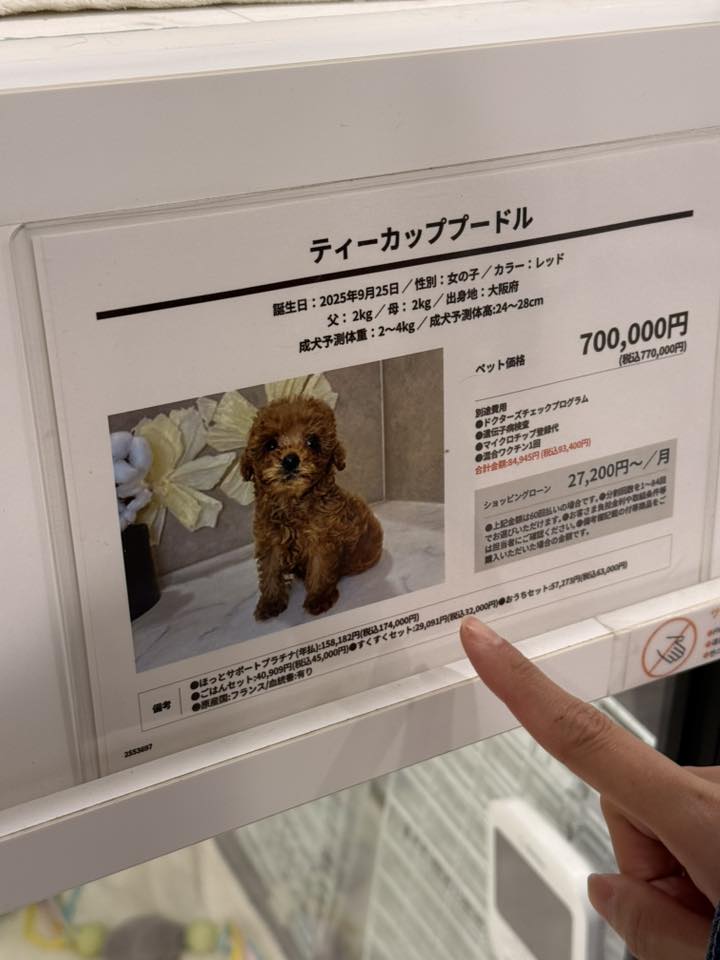 รอบนี้ผมนอนโอซาก้านานหน่อย ก็ไปเดินมาทั้งที่ Shinsaibashi และ Umeda ส่วนบางสาขาที่ชื่อ Pet Paradise DX ซึ่งผมไปเจอที่ Kobe จะมีน้องหมาขายด้วยครับ ลองส่องราคาดูแล้วอย่างพุดเดิ้ลทอยต้องมี 700,000 เยน ส่วนน้องไซถือว่าเป็น Premium Dog ต้องมีตังถึง 2 ล้านเยน! ถึงจะได้อุ้มกลับบ้าน