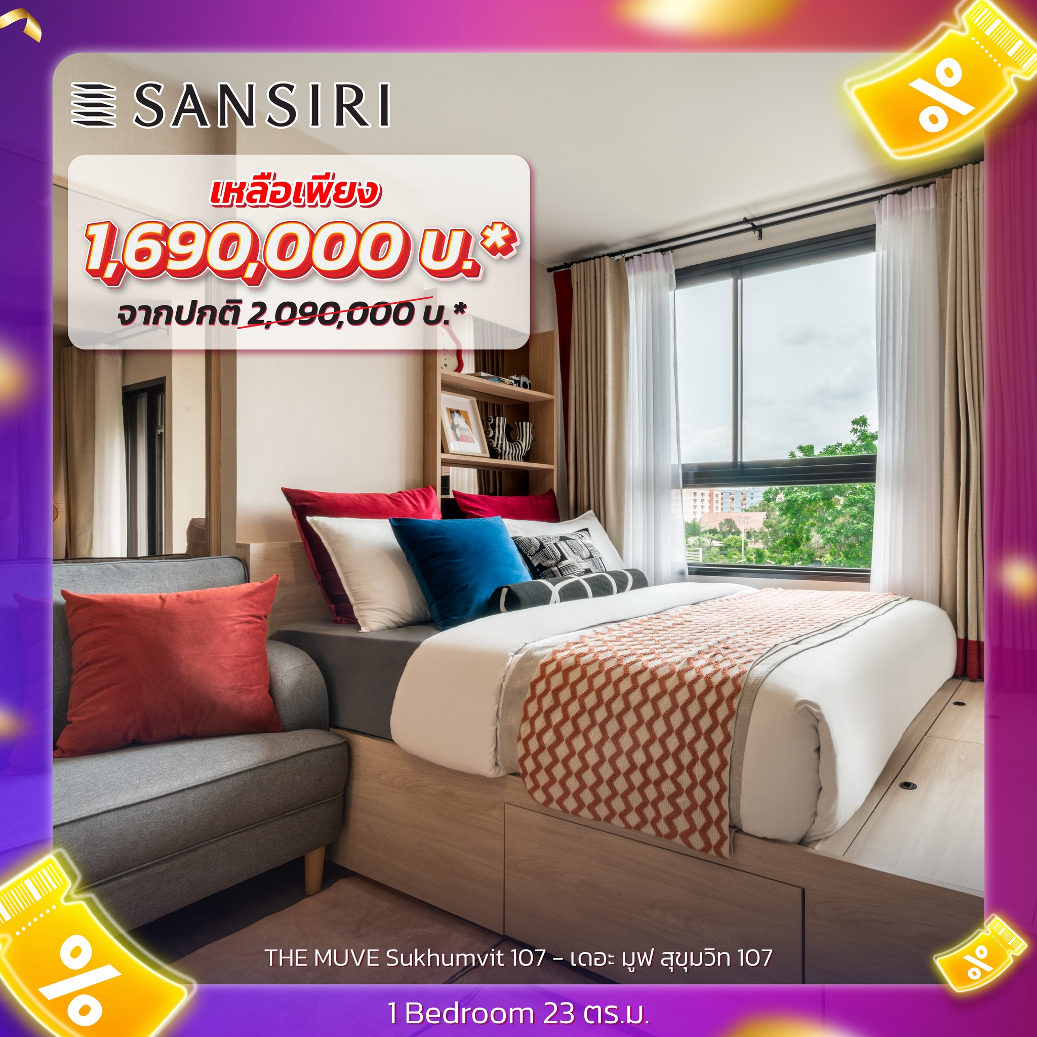 - ห้อง 1 Bedroom 23 ตร.ม. ทิศตะวันออก ชั้นสูง ลด 400,000 บาท ราคา 1.69 ล้าน* (จาก 2.09 ล้าน)