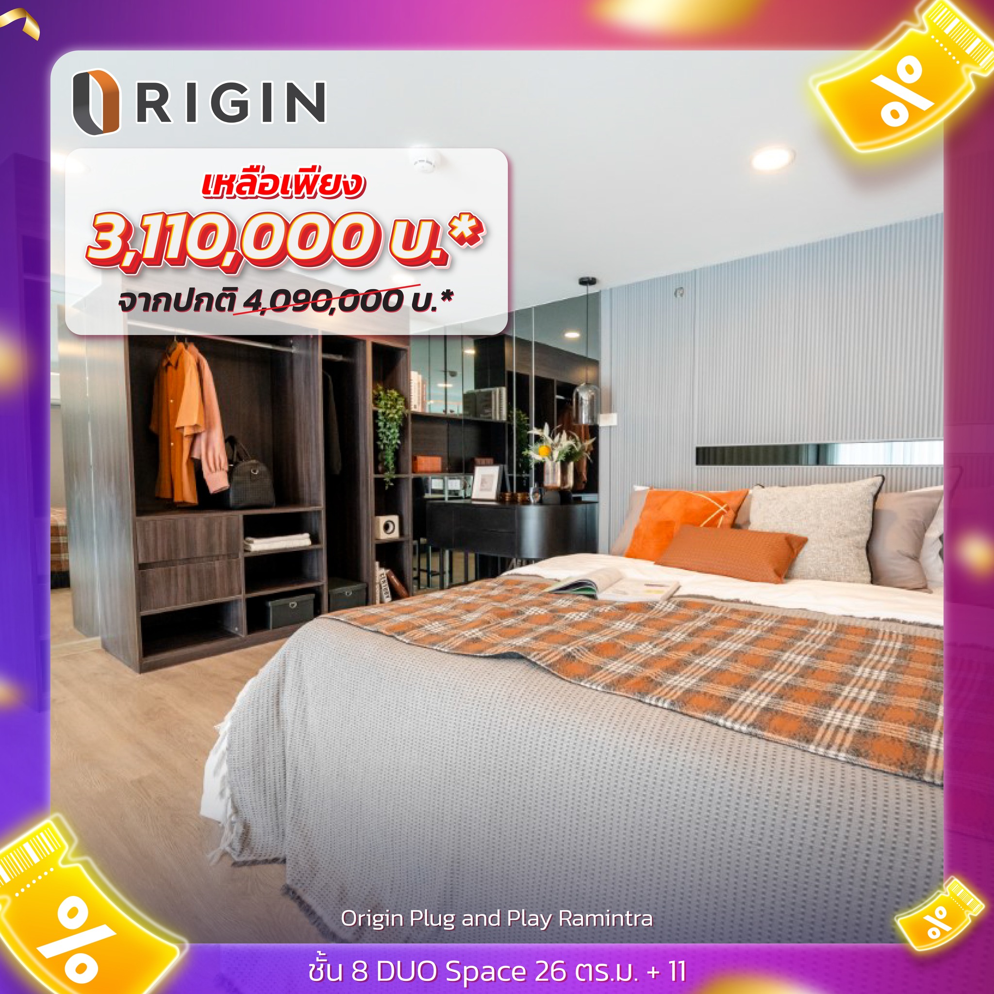 Origin Plug & Play Ramintra ห้อง 1 Bedroom 26 ตร.ม. ชั้น 8 ดูเพิ่มเติมที่นี่คับ https://www.livinginsider.com/outlet/outlet_detail.php…