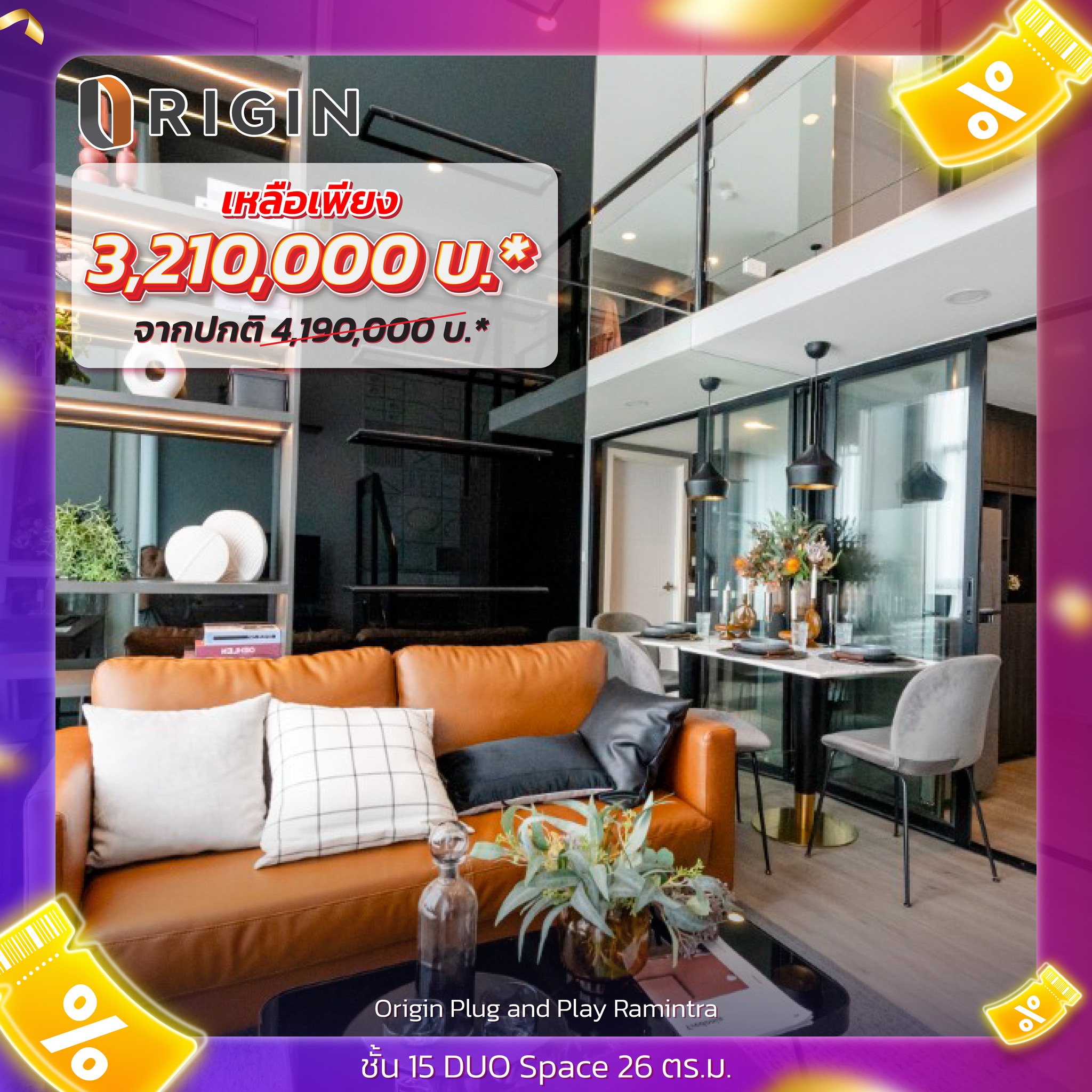 Origin Plug & Play Ramintra คอนโด Pet Friendly รูปแบบห้อง DUO Space สูงโปร่ง มีชั้นลอย ใกล้ MRT สายสีชมพู 70 ม.