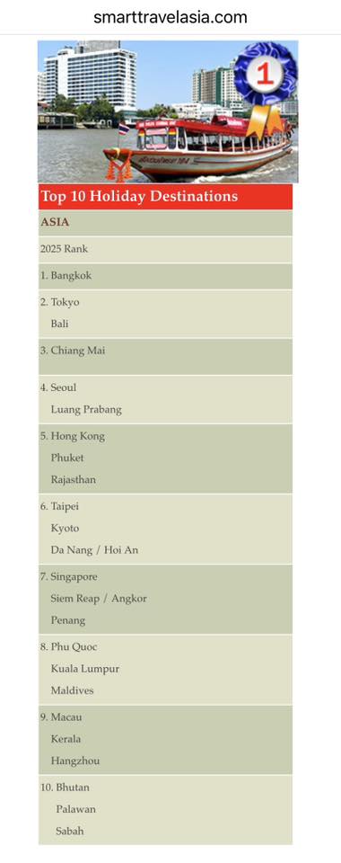 🥇 อันดับ 1 เมืองท่องเที่ยวที่ดีที่สุดในเอเชีย Best Holiday Destination in Asia จัดอันดับโดย Smart Travel Asia