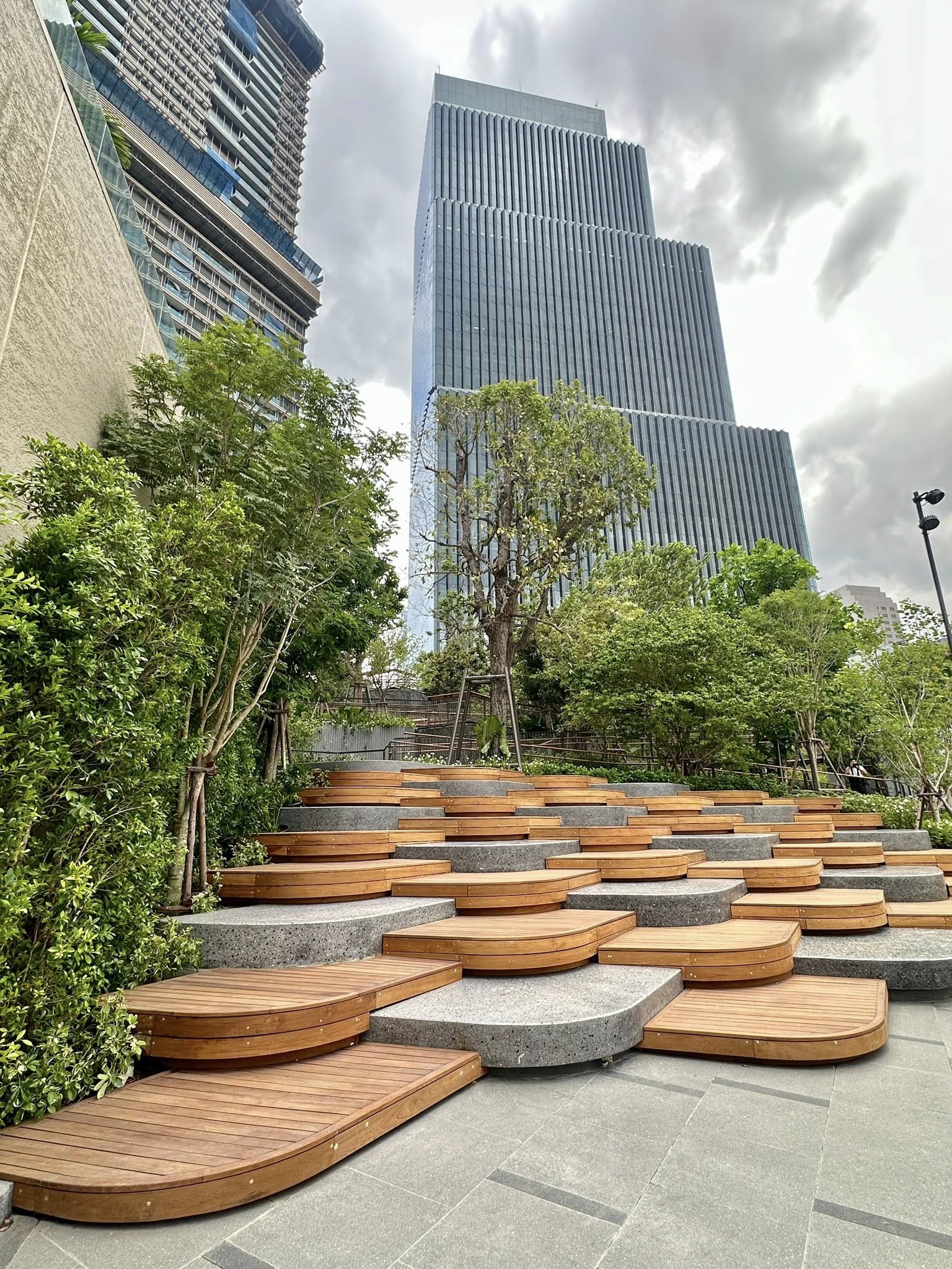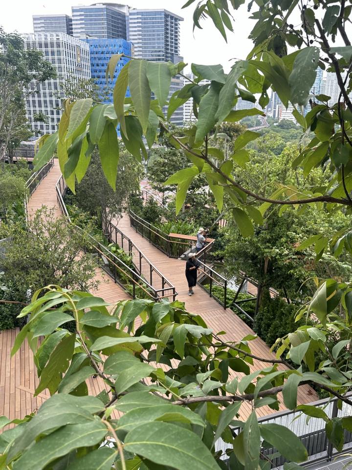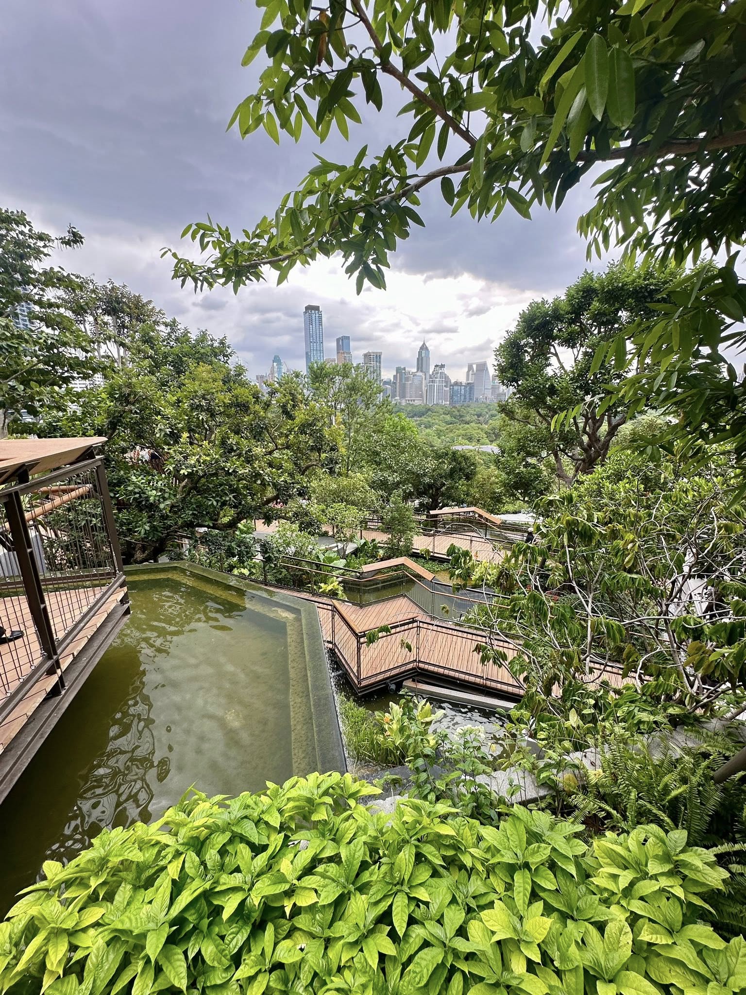 สวนแห่งนี้เหมือนเป็นหัวใจหลักของ Dusit Central Park เป็น Oasis สำหรับคนที่เข้ามาใช้บริการห้าง, โรงแรม, สำนักงาน และที่พักอาศัย รวมถึงคนทั่วไปที่ผ่านไปผ่านมา ให้มีสวนมาพักผ่อนหย่อนใจ ซึ่งผมว่าธรรมชาติมันเพิ่มความกระชุ่มกระชวยให้ชีวิตคนเมืองได้มากเลย เค้าออกแบบให้เหมาะกับทุกเพศทุกวัย โดยจะเป็นทางเดินเทรลตั้งแต่ชั้น 4-7 ขนาดรวม 11,000 ตร.ม. ที่เค้ารวบรวมพืชพรรณไม้ไทยทั้งหมด เช่น ต้นจิกน้ำ, กระบก, มะกอกน้ำ และตะแบก รวมถึงการจำลองแอ่งน้ำและน้ำตกเล็กใหญ่ไว้ทั่วบริเวณ เป็นอีกพื้นที่ช่วยดูดซับคาร์บอนไดออกไซด์ เติมออกซิเจน รวมถึงเป็นบ้านให้นก แมลงปอ สัตว์เล็กสัตว์น้อย เค้าออกแบบตามหลัก Biophilic Design และ Universal Design รองรับการใช้รถเข็นด้วยครับ
