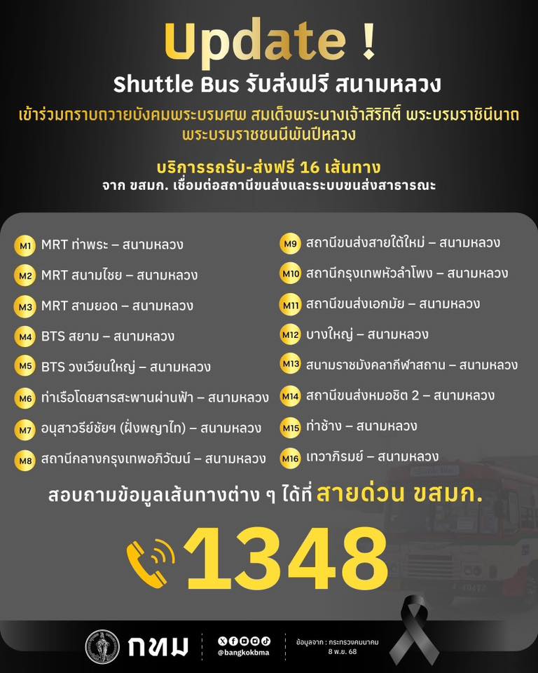 MRT ท่าพระเป็นอีกหนึ่งที่ที่มีรถ Shuttle Bus รับ-ส่งฟรีไปสนามหลวง ใครอยากไปกราบพระบรมศพ และไปเดินเที่ยวชมวัดสวยๆ ชมเมืองเก่า และพิพิธภัณฑ์ต่างๆ มาขึ้นรถที่นี่กันได้ตั้งแต่เวลา 8.00-20.00 น. ครับ รถจอดรออยู่ที่ประตูทางออก 1 ลงมาเจอเลย ส่วนที่อื่นๆ ก็มีบริการ เดี๋ยวผมแปะข้อมูลไว้ในคอมเมนต์น้า
