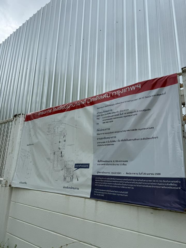 โรงเรียนนานาชาติมิดเดิลตัล กรุงเทพเสร็จประมาณ Q2 ปี 69