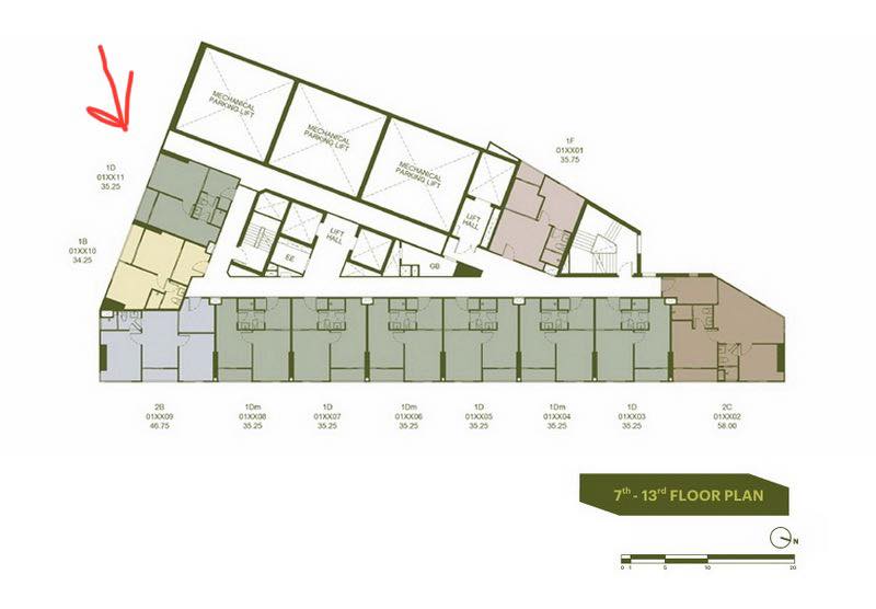 ห้องลอฟต์ตำแหน่งนี้มีแค่ชั้น 7-13 อยู่คนเดียวก็ห้องเขียวที่ผมชี้เอาไว้ ถ้าอยู่เป็นครอบครัวก็ห้องใหญ่สุดทางฝั่งขวามือ พื้นที่ใช้สอยเยอะ รวมๆ กันก็ 48 ตร.ม. ได้ อยู่ในโครงการ The Base Urban Rama 9 สร้างเสร็จก่อนขายจากแสนสิริ