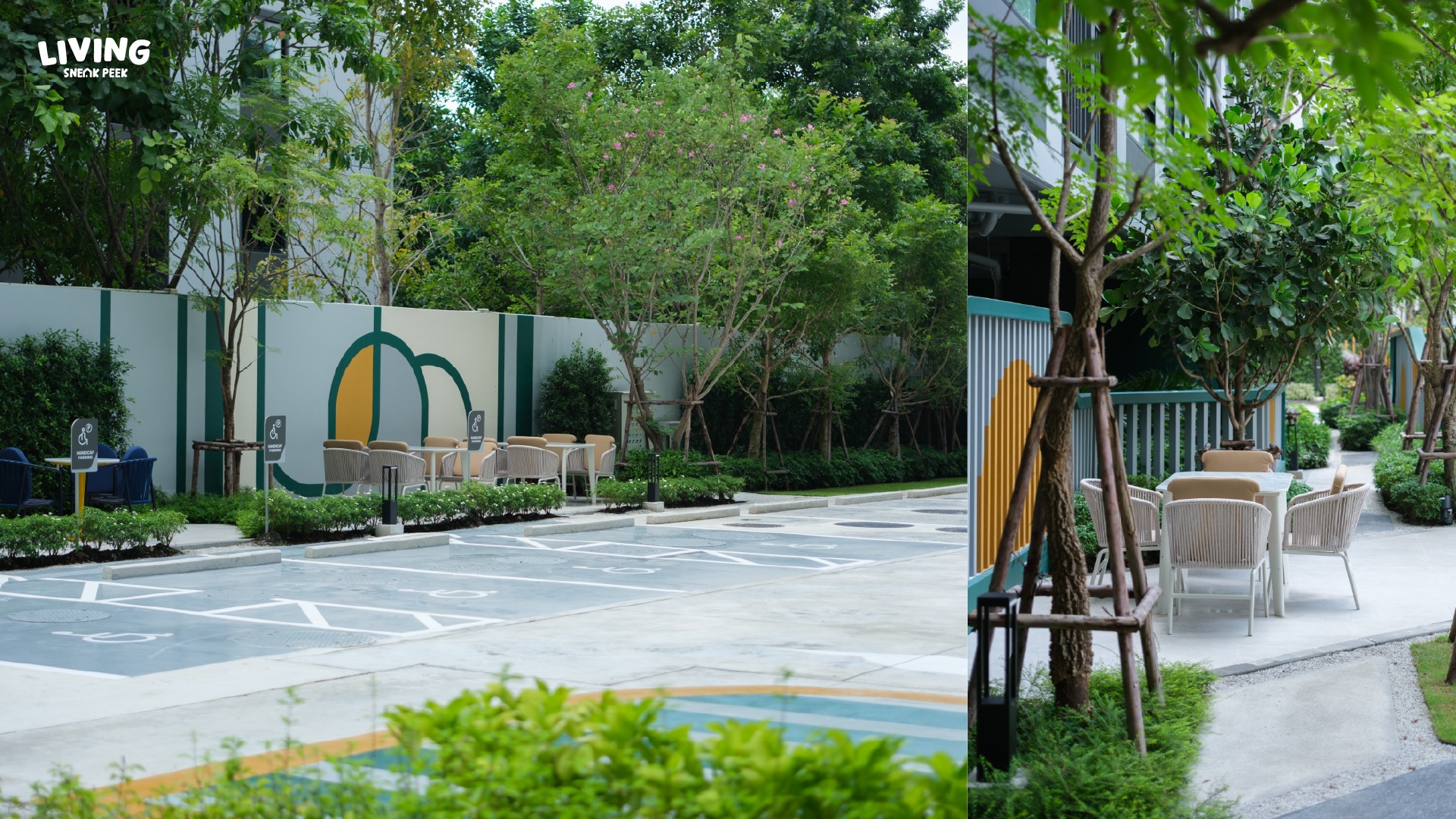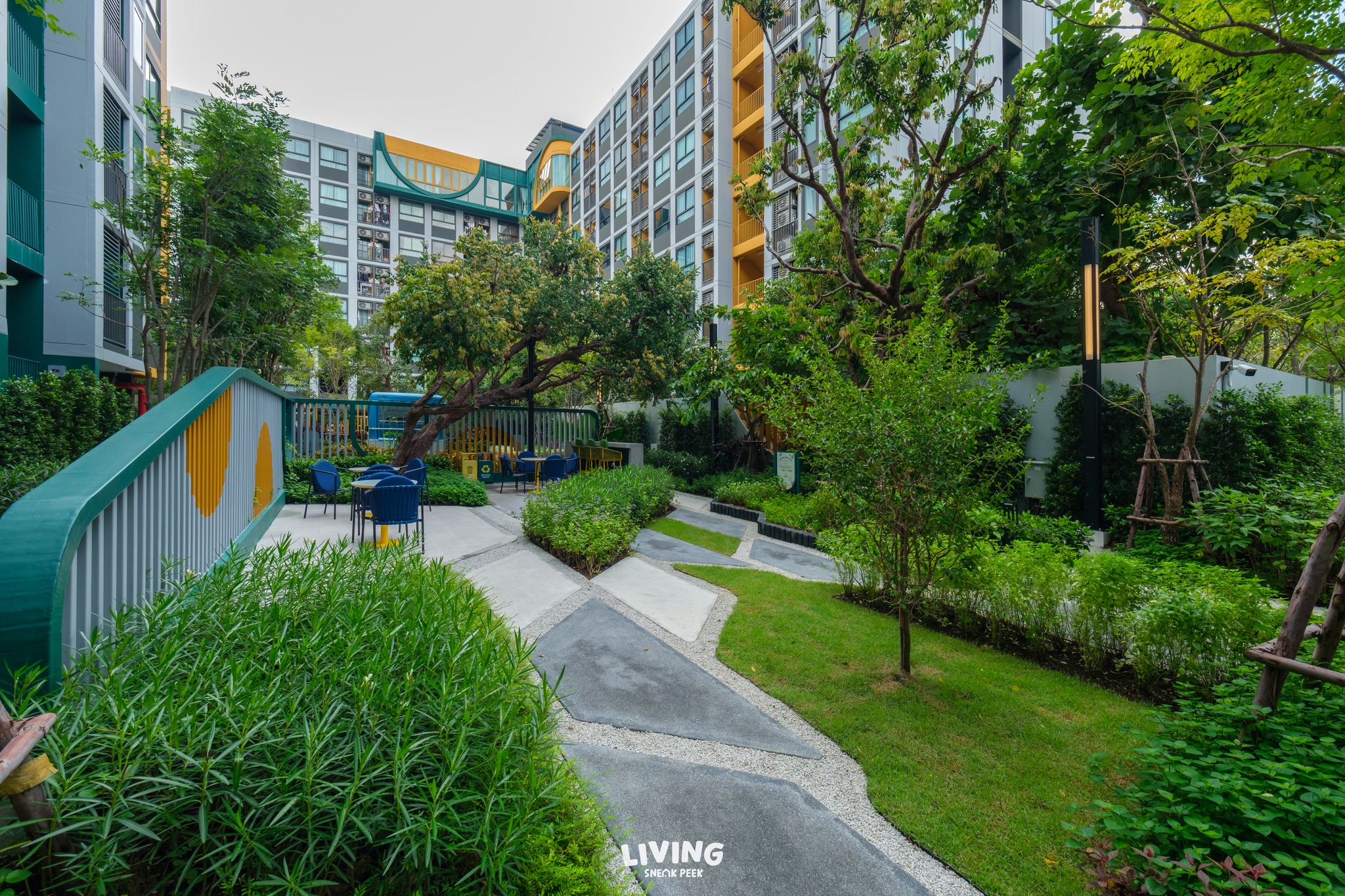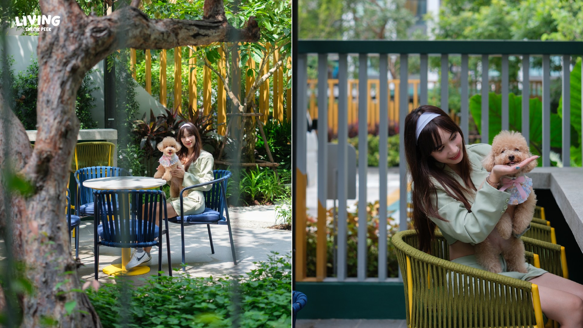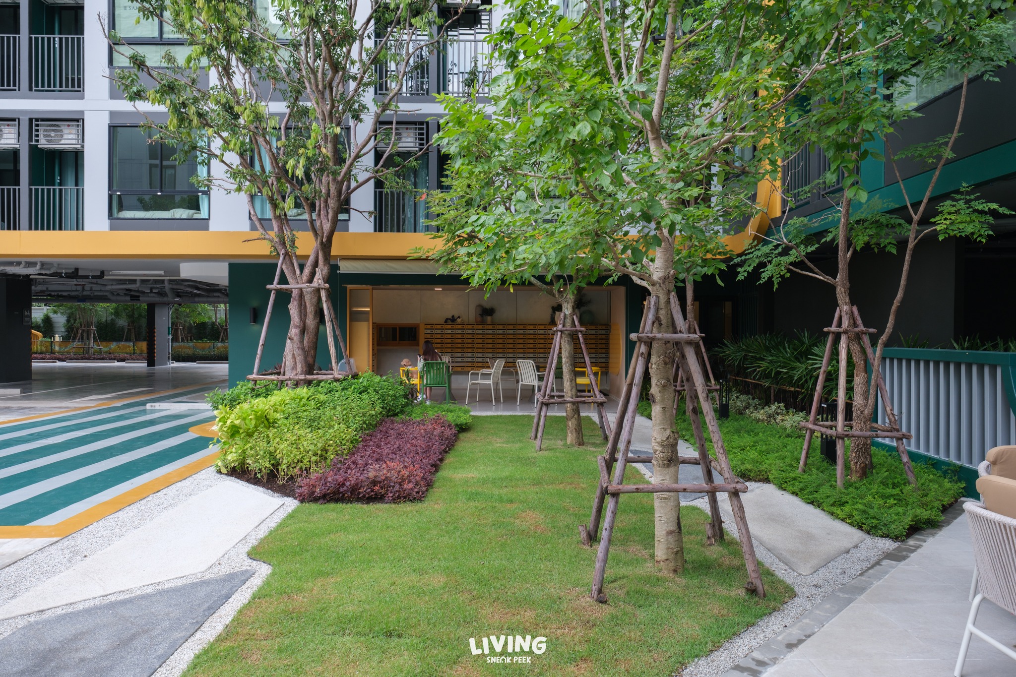 4. ตัวโครงการมีจำนวนยูนิตไม่มากแค่ 261 ยูนิต เป็นตึกเตี้ย 8 ชั้น บรรยากาศดี ผมชอบการออกแบบสวนที่อยู่ด้านในที่มันร่มรื่น มีทั้งไม้ดอก พืชผักสวนครัว สำหรับคนเลี้ยงหมานี่ต่อให้อยู่บ้านมีสวนส่วนตัวแบบผมนะ ลูกสาวก็ชอบออกมาสำรวจข้างนอกอยู่ดี การมีพื้นที่ให้นั่งเล่นในสวน มี Pet Park ที่เลือกพืชพรรณที่เป็นมิตรกับน้องมาปลูก มีอุปกรณ์ครบถ้วน ทั้งมุมนั่งพักผ่อน ของเล่น สนามหญ้า พร้อมที่ทิ้งขยะ ก๊อกล้างเท้าน้อง มีก๊อกให้เราล้างมือ แถมปลั๊กไฟให้นั่งชาร์จมือถือเล่นนี่คือคิดมาเผื่อคนเลี้ยงด้วย เหมาะมาก