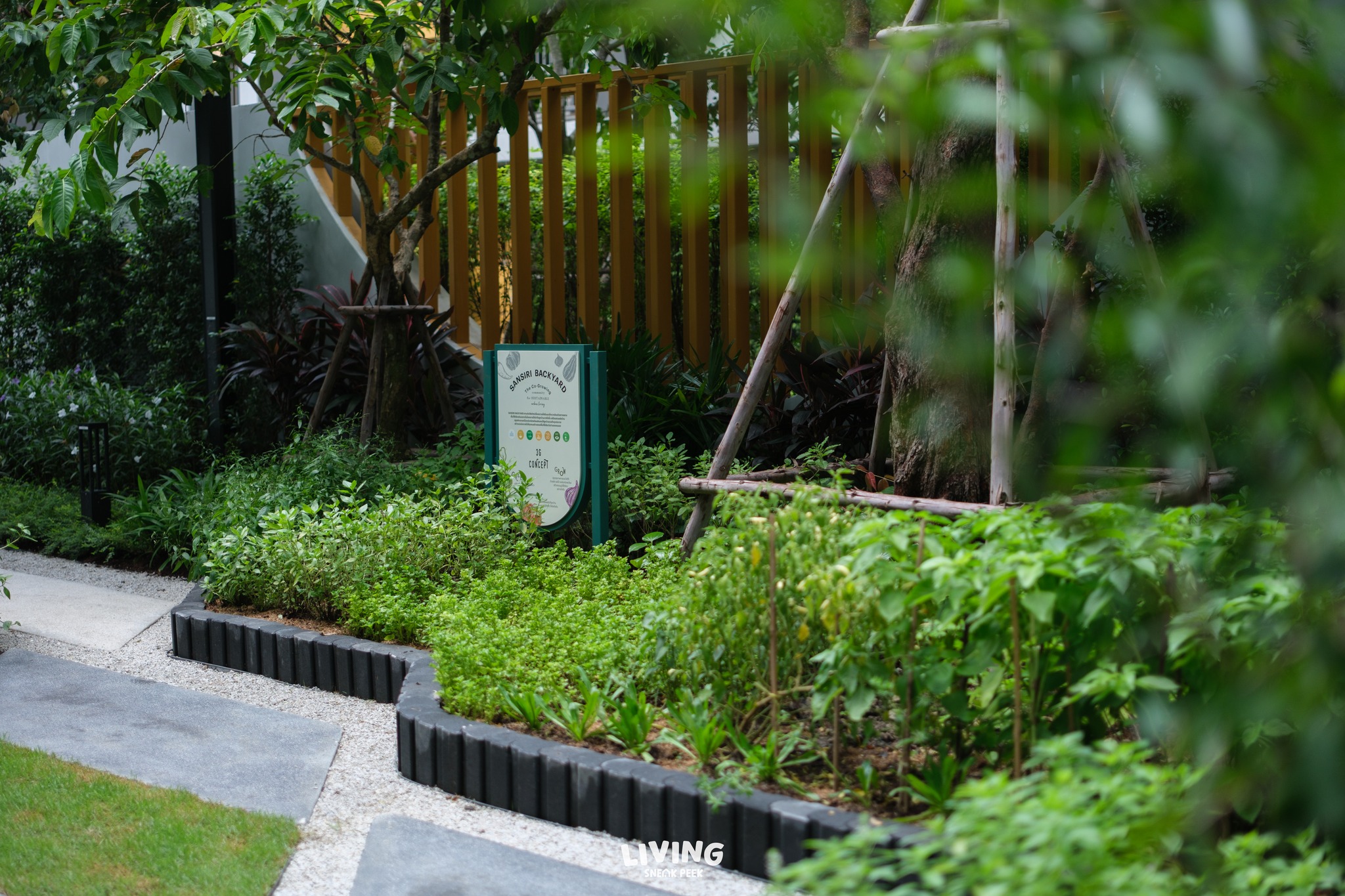 ข้างกันเป็น Sansiri Backyard ปลูกพืชผักสวนครัว ให้ลูกบ้านเอาไปทำอาหารได้ กลมกลืนไปกับสวนเลย