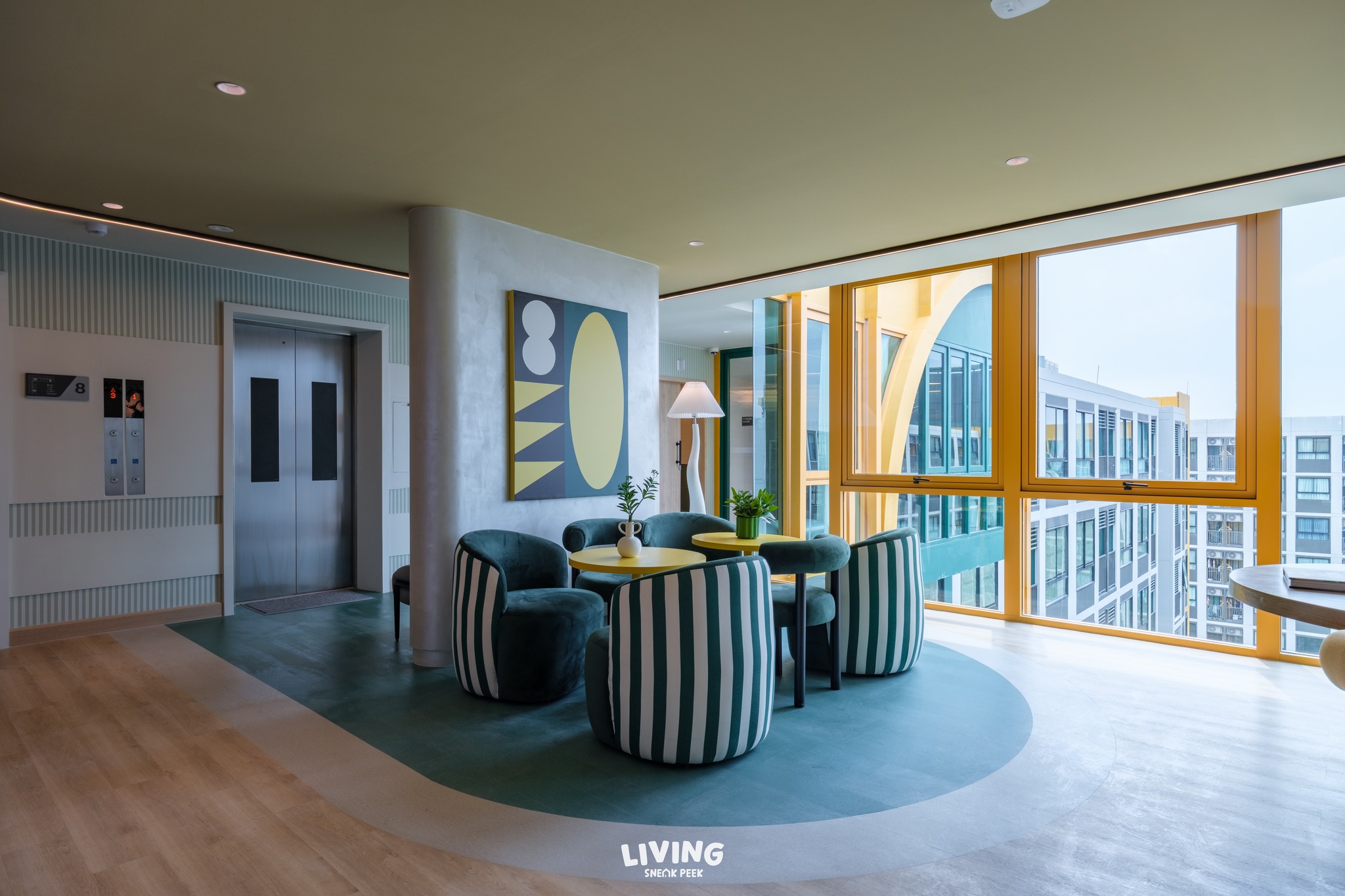 สีสันสดใสโดดเด่นเห็นแต่ไกล สีเขียวตัดเหลืองแบบนี้ THE MUVE จากแสนสิริแน่นอนน