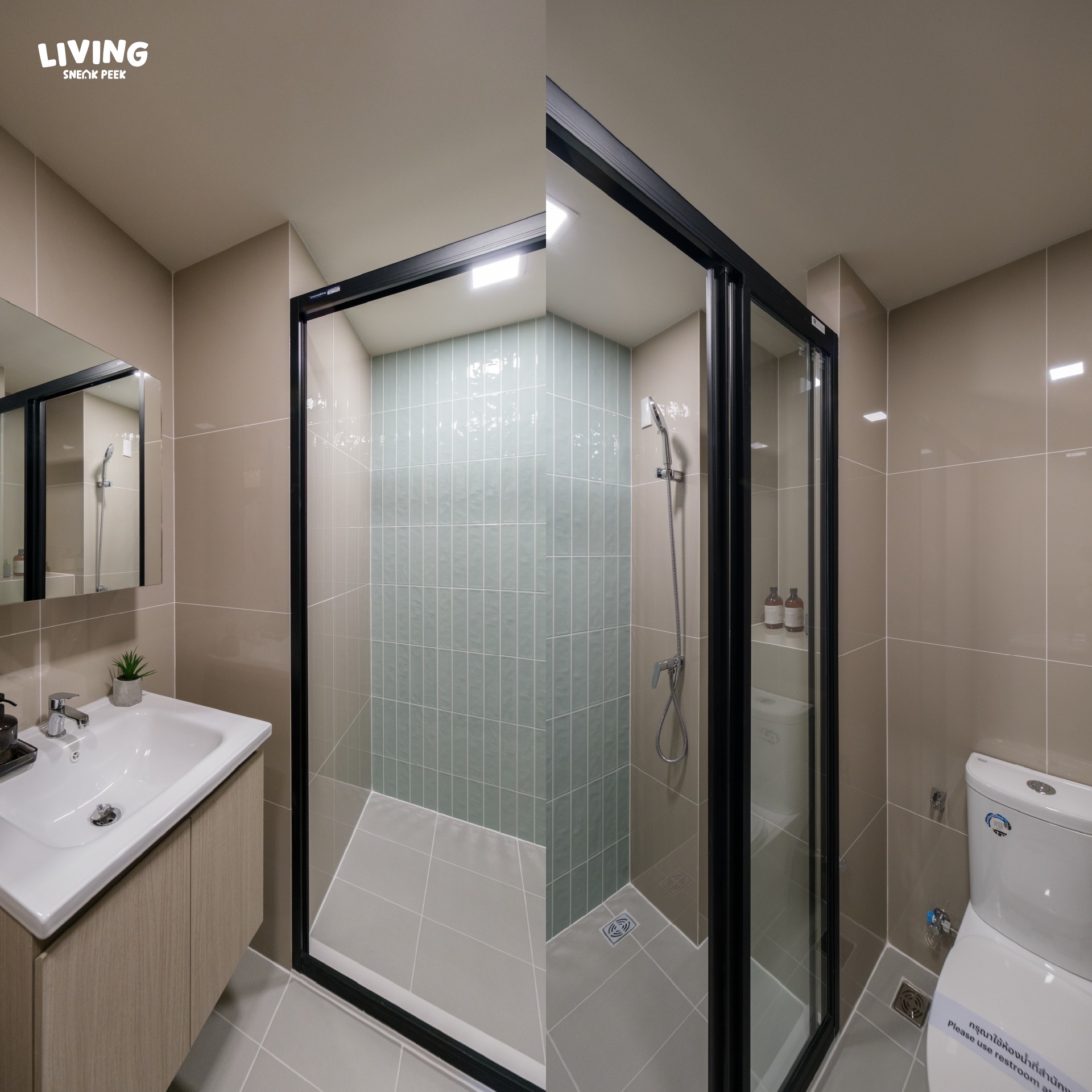 ส่วนสุดท้ายคือห้องน้ำ เค้าทำตู้เก็บของใต้อ่างล้างมือ และตู้กระจกเปิดเก็บของหลังกระจกมาให้ กั้นโซนเปียกแห้งไว้แล้ว พร้อมสุขภัณฑ์ American Standard และก๊อกน้ำ Englefield สีสันห้องน้ำเป็นกระเบื้องสีครีมตัดกับสีเขียวอมฟ้าให้ดูมีอะไรนิดนึง และนี่ก็คือฟังก์ชันของห้องพักอาศัยทั้งหมดครับ