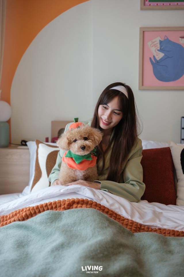 น้องวิ้งกี้เห็นสีห้องนี้ขอเปลี่ยนชุดรับบทเป็นคุณหนูฟักทอง ต้อนรับ Halloween กันสักหน่อย แต่หลอกใครไม่ได้เลยสักคน